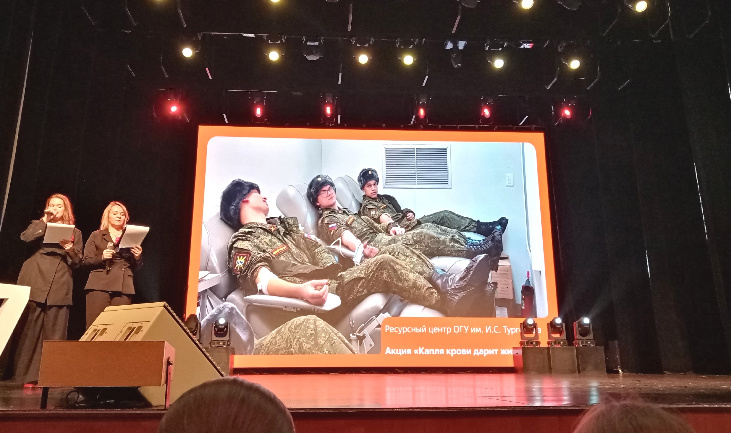 Университет представил творческий коллектив Ансамбль барабанщиков "ТРИУМФ", была отмечена активная работа в области донорства и творческой деятельности Инны Орловой, режиссера-постановщика Центра культуры и эстетического образования ОГУ имени И.С. Тургенева.