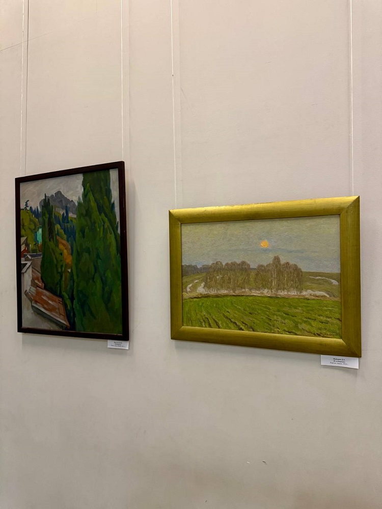 Экспозиция включает живописные полотна и графические рисунки, выполненные студентами и педагогами факультета.