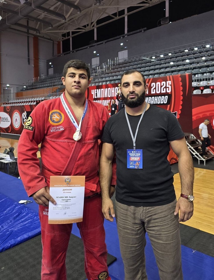 Исполняющий обязанности ректора Орловского государственного университета имени И.С. Тургенева Павел Меркулов встретился с чемпионом мира по грэпплингу, студентом лечебного факультета Медицинского института ОГУ имени И.С. Тургенева Лаврентом Оганесяном и его тренером Давидом Оганнисяном.