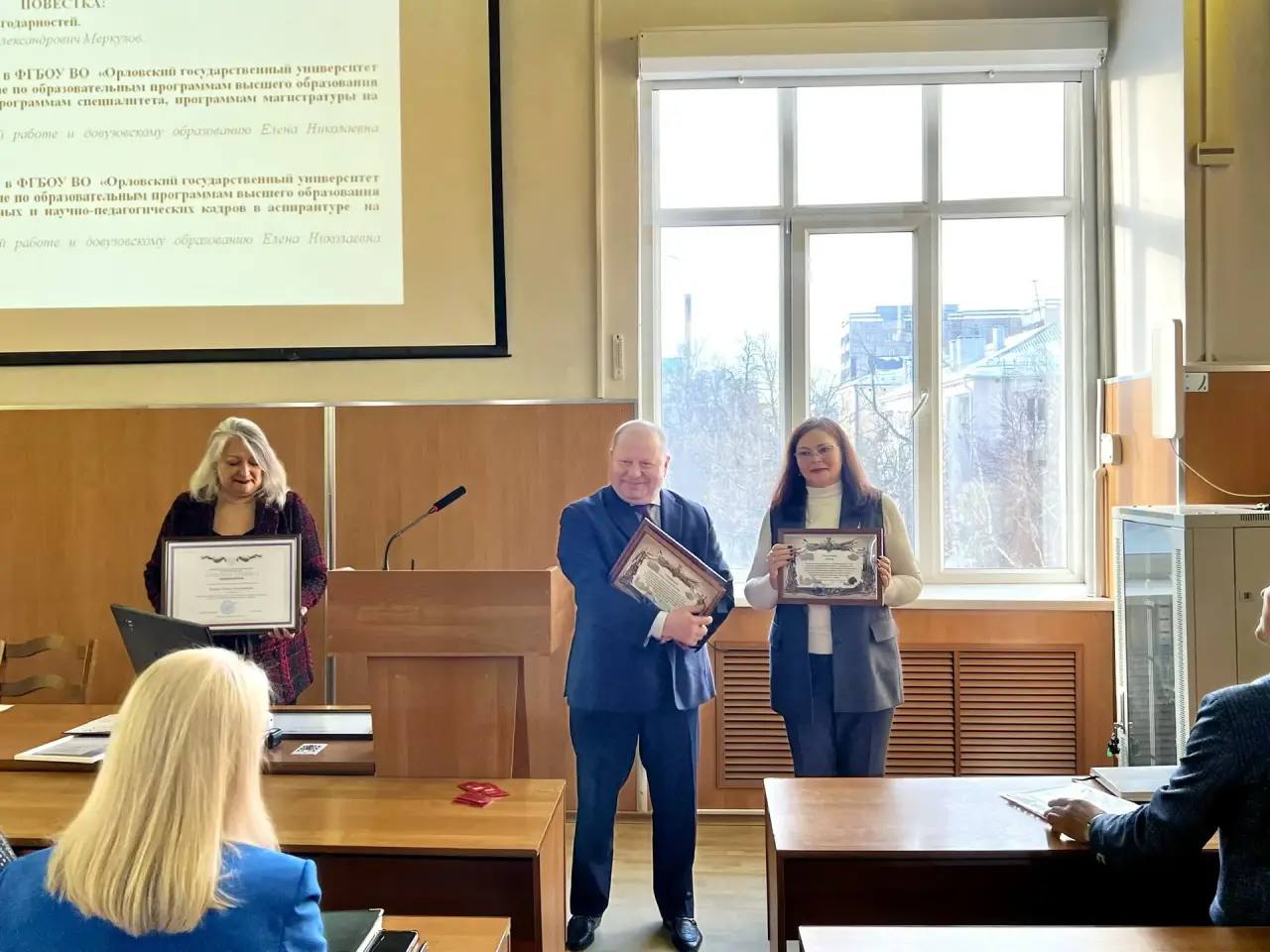 Награждение сотрудников и преподавателей на Ученом совете ОГУ имени И.С. Тургенева