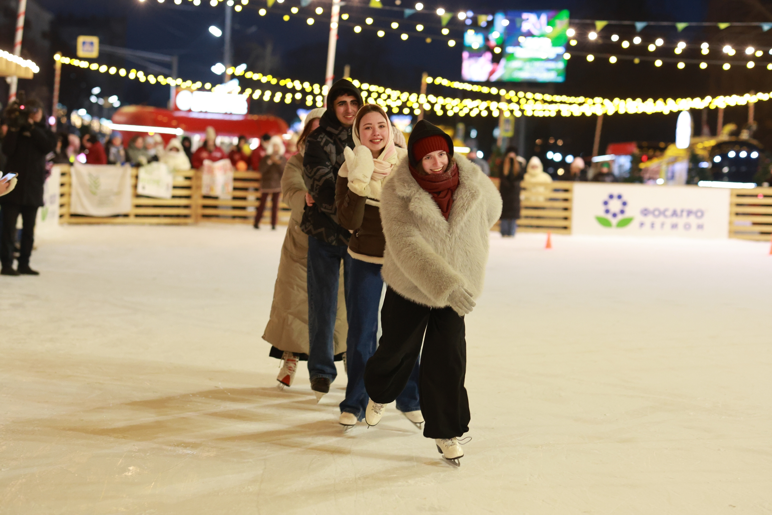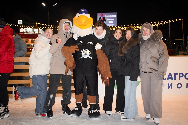 А вечером студенты приняли участие в мероприятиях акции «Студенческая ночь» на главной площади города — все желающие катались на катке.