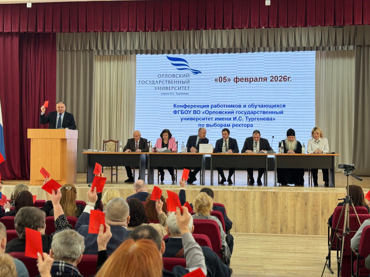5 февраля 2026 года состоялась конференция работников и обучающихся федерального государственного бюджетного образовательного учреждения высшего образования «Орловский государственный университет имени И.С. Тургенева» в ходе которой прошли выборы на должность ректора федерального государственного бюджетного образовательного учреждения высшего образования «Орловский государственный университет имени И.С. Тургенева».