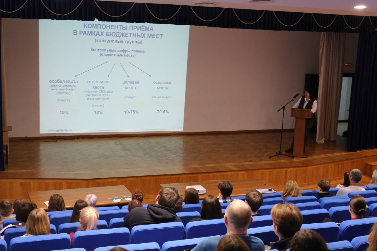В актовом зале директор Департамента организации приема и содействия трудоустройству Татьяна Иващенко и руководитель ресурсного центра профессиональной ориентации Виталий Терехов подробно рассказали о Правилах приема в 2026 году. Без паники и воды: как считать баллы, какие экзамены сдавать, как получить дополнительные бонусы и не только.