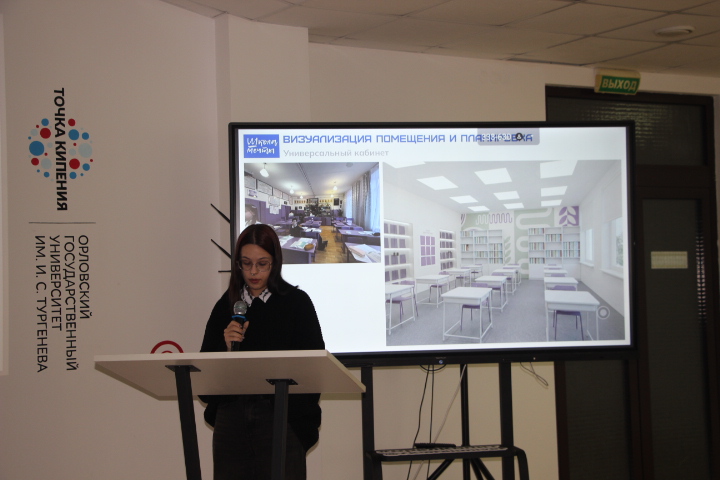 24 февраля в Точке кипения ОГУ имени И.С. Тургенева прошла открытая предзащита дизайн-проектов, подготовленных студентами художественно-графического факультета университета для МБОУ КР «Шаховская СОШ» (Кромской район, деревня Ульяновка). Мероприятие прошло в рамках федерального проекта «Школа мечты», который входит в программу капитального ремонта школ и направлен на создание современного, комфортного и вдохновляющего образовательного пространства.