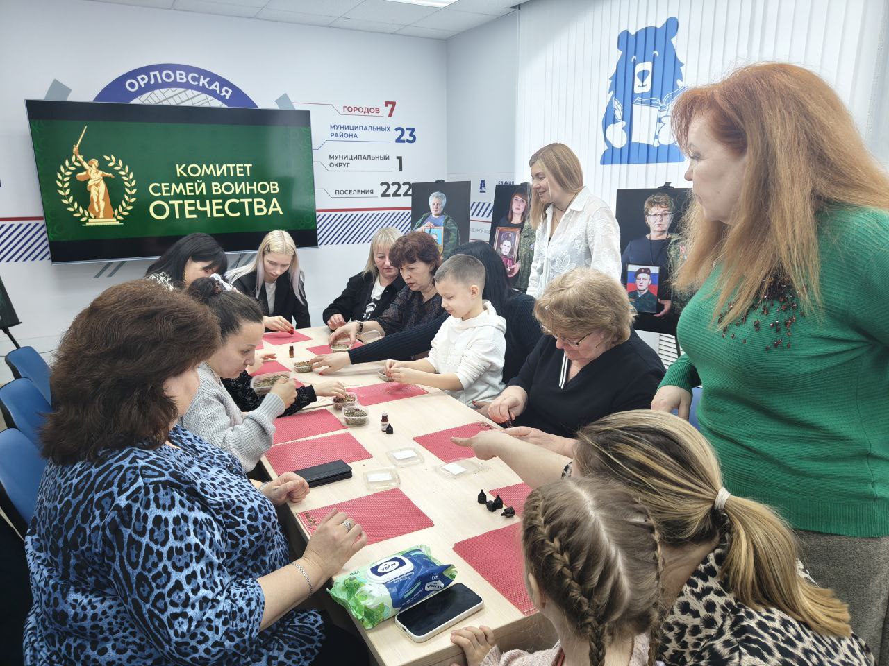 Одна из первых встреч прошла в Штабе общественной поддержки Орловской области. Лектор Российского общества «Знание», доктор исторических наук, декан исторического факультета ОГУ им. Тургенева Ирина Воронкова провела просветительскую лекцию для жен и вдов участников специальной военной операции. Диалог посвятили теме служения Отечеству и преемственности поколений: как герои прошлого и настоящего становятся примером истинного патриотизма и показывают подрастающему поколению, что такое истинный патриотизм. После диалога участниц ожидал мастер-класс, где каждая смогла примерить на себя роль рукодельницы и изготовить декоративные свечи, создавая уникальный дизайн.