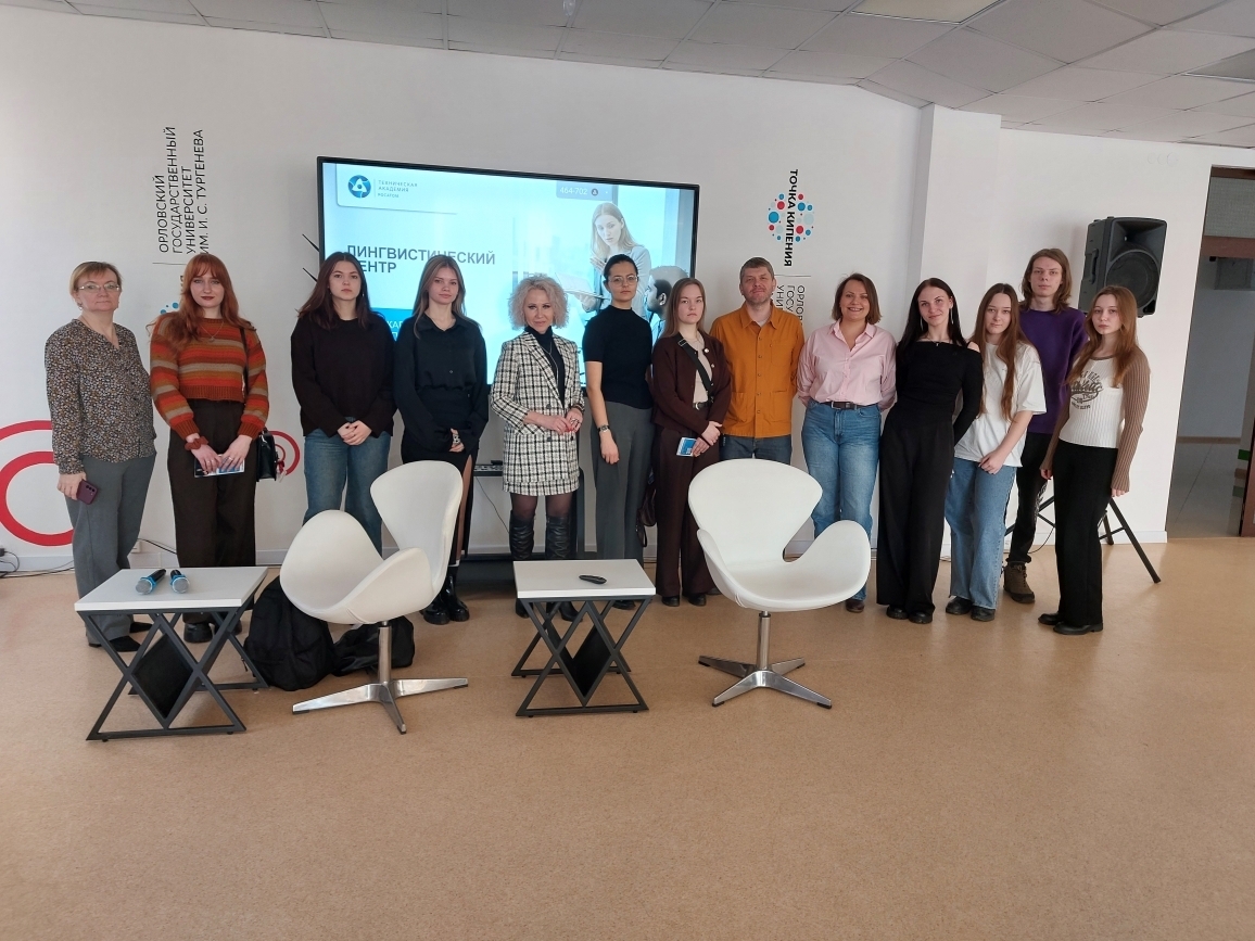12 марта 2026 года в Центре коллективной работы «Точка кипения» Орловского государственного университета имени И.С. Тургенева прошла встреча студентов-лингвистов с представителями Лингвистического центра Технической академии Госкорпорации «Росатом». Мероприятие было организовано Центром карьеры университета.