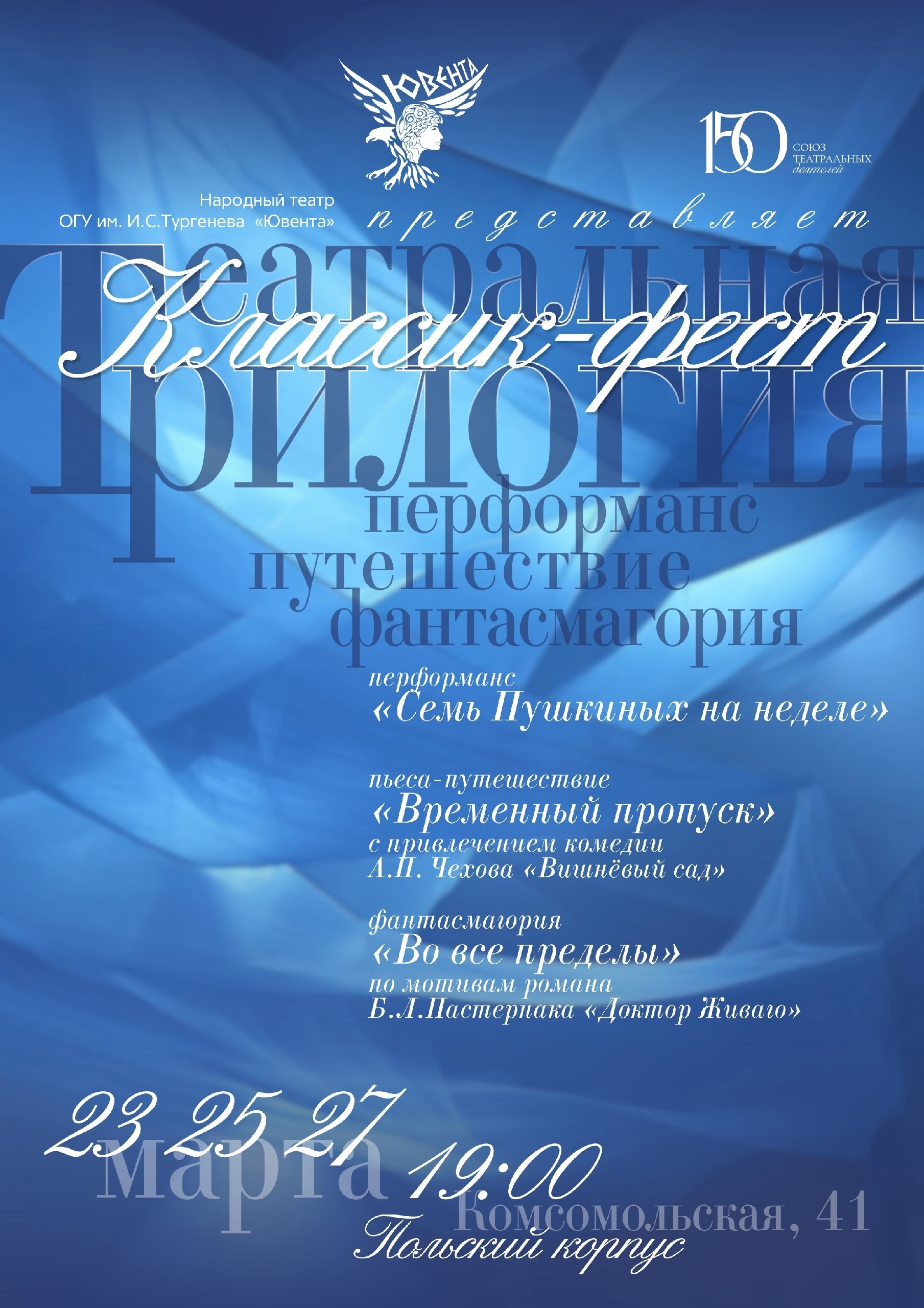 Народный театр Ювента ОГУ им. И.С. Тургенева приглашает на классик-фест Театральная трилогия