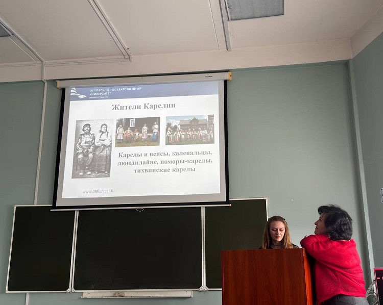 Участники смогли погрузиться в уникальную атмосферу Карелии благодаря мультимедийной презентации, сочетавшей в себе современные видеоматериалы с архивными фотографиями и народной музыкой. Особое внимание было уделено языкам и фольклору коренных народов: студенты услышали звучание карельской речи, узнали о рунах, составивших основу эпоса «Калевала», и о традиционных ремёслах, таких как создание украшений из карельской берёзы и вышивка.