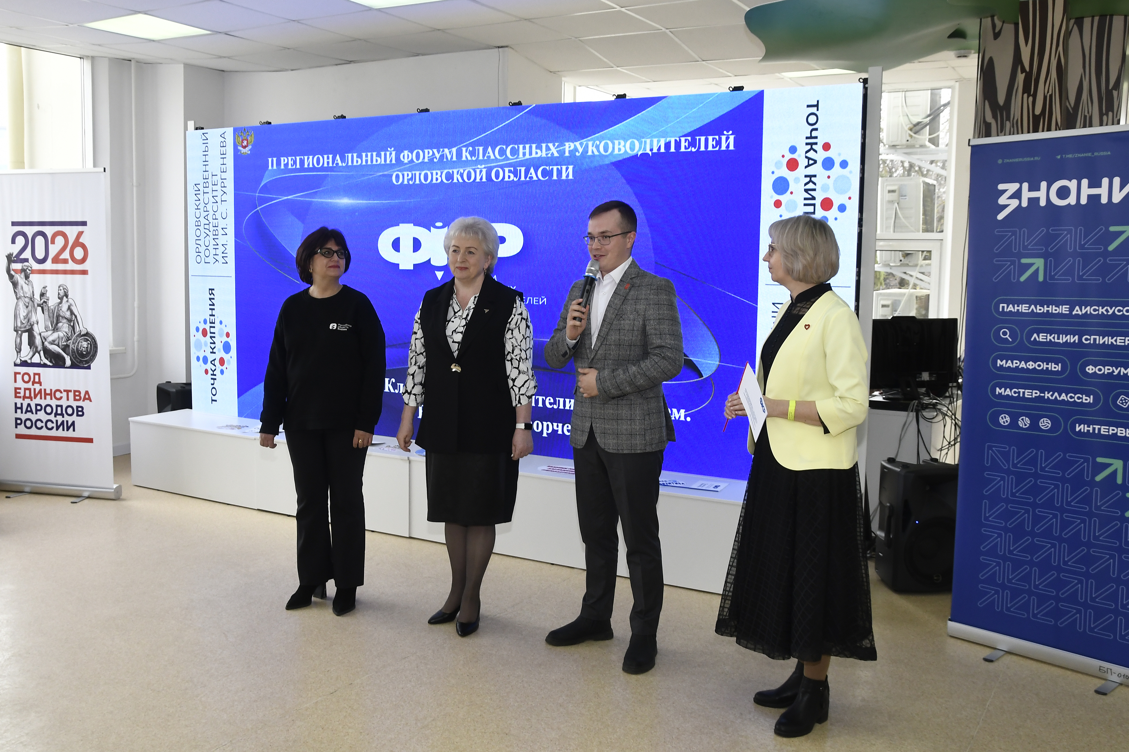 II Региональный форум «Классные руководители со Знанием» прошел в «Точке кипения» ОГУ имени И.С. Тургенева. Мероприятие организовано Российским обществом «Знание», Институтом развития образования, Департаментом образования Орловской области, ОГУ им. И.С. Тургенева, Орловским техникумом сферы услуг, командой «послов» Форума классных руководителей в Орловской области при поддержке социальных партнеров.