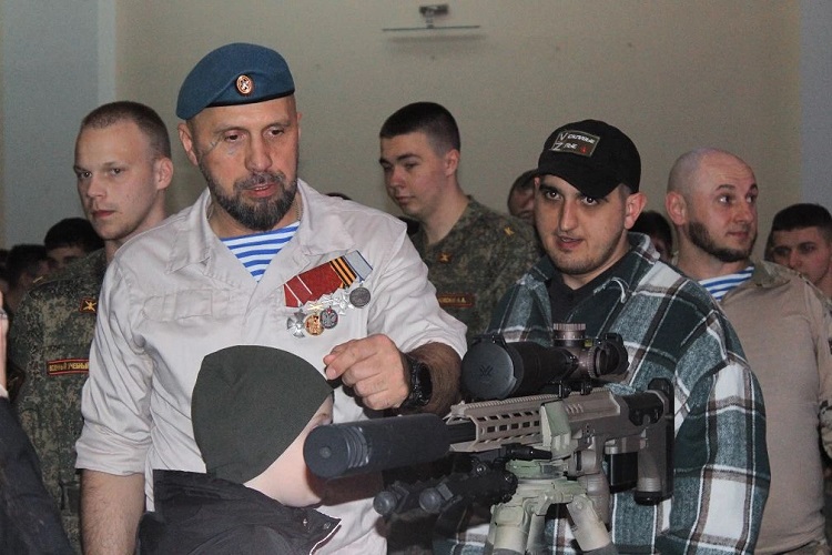 В ходе своего выступления он поделился со студентами историей своего пути от молодого солдата до ветерана, рассказал о ярких эпизодах службы. Также Вячеслав исполнил несколько собственных песен, включая композиции «Пуля калибра 338», «Сирия» и «Разведчику спецназа ВДВ».