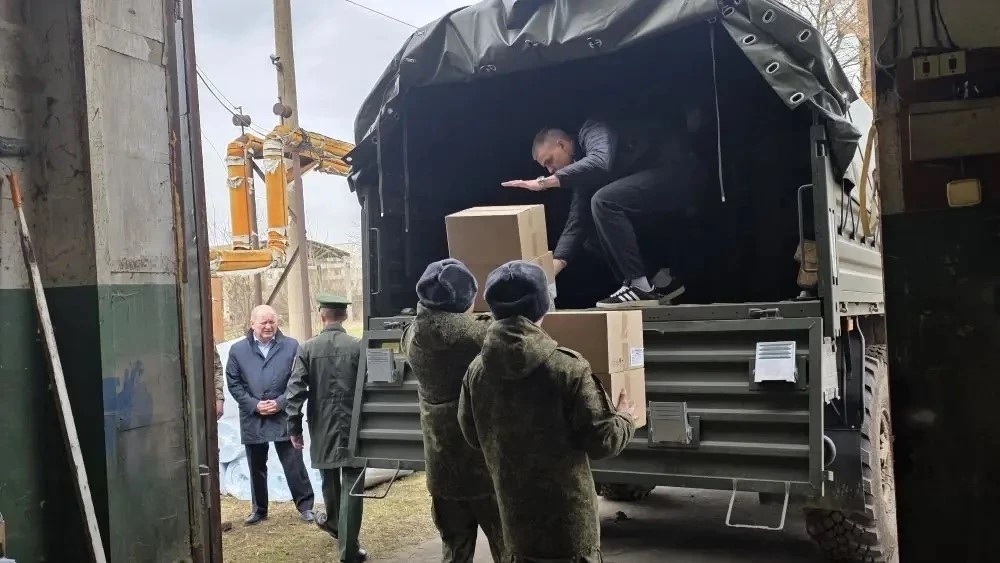 Армейский КАМАз с грузом, включавшим 1,5 тонны кондитерских изделий от орловских производителей, около 100 коробок лапши быстрого приготовления (свыше 4000 порций) и рулоны теплоизоляционного материала, отправился на Курское направление.