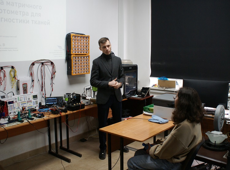 - студент 2 курса Виталий Немов познакомил школьников с прототипом матричного спектрофотометра для экспресс-диагностики тканей;