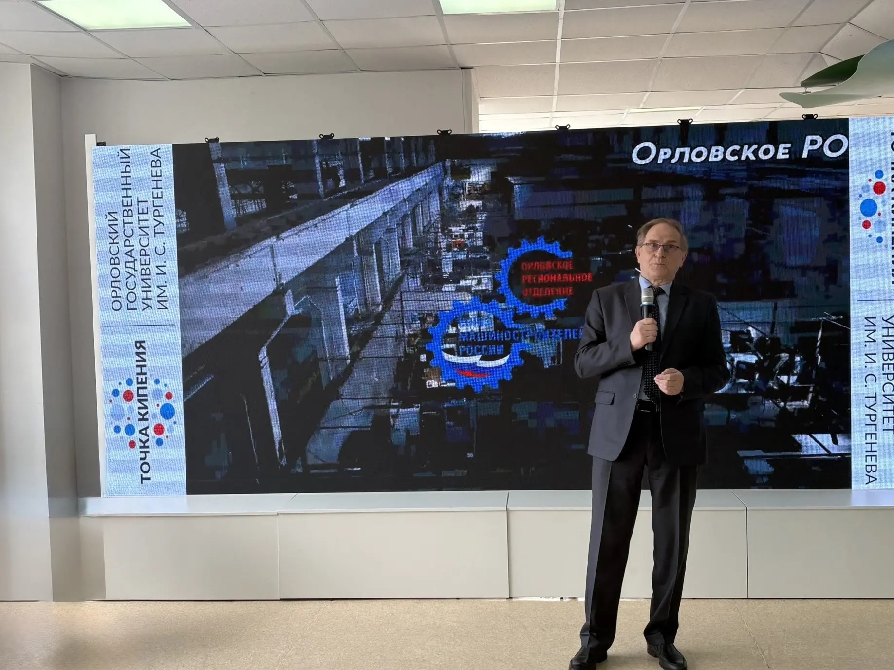 Анатолий Новиков, заместитель руководителя Департамента промышленности и торговли Орловской области: «Здравствуйте! Это замечательное мероприятие, юбилейное, и я рад здесь присутствовать. Очень радостно и приятно, что сотрудничество Департамента, университета и партнеров продолжается».