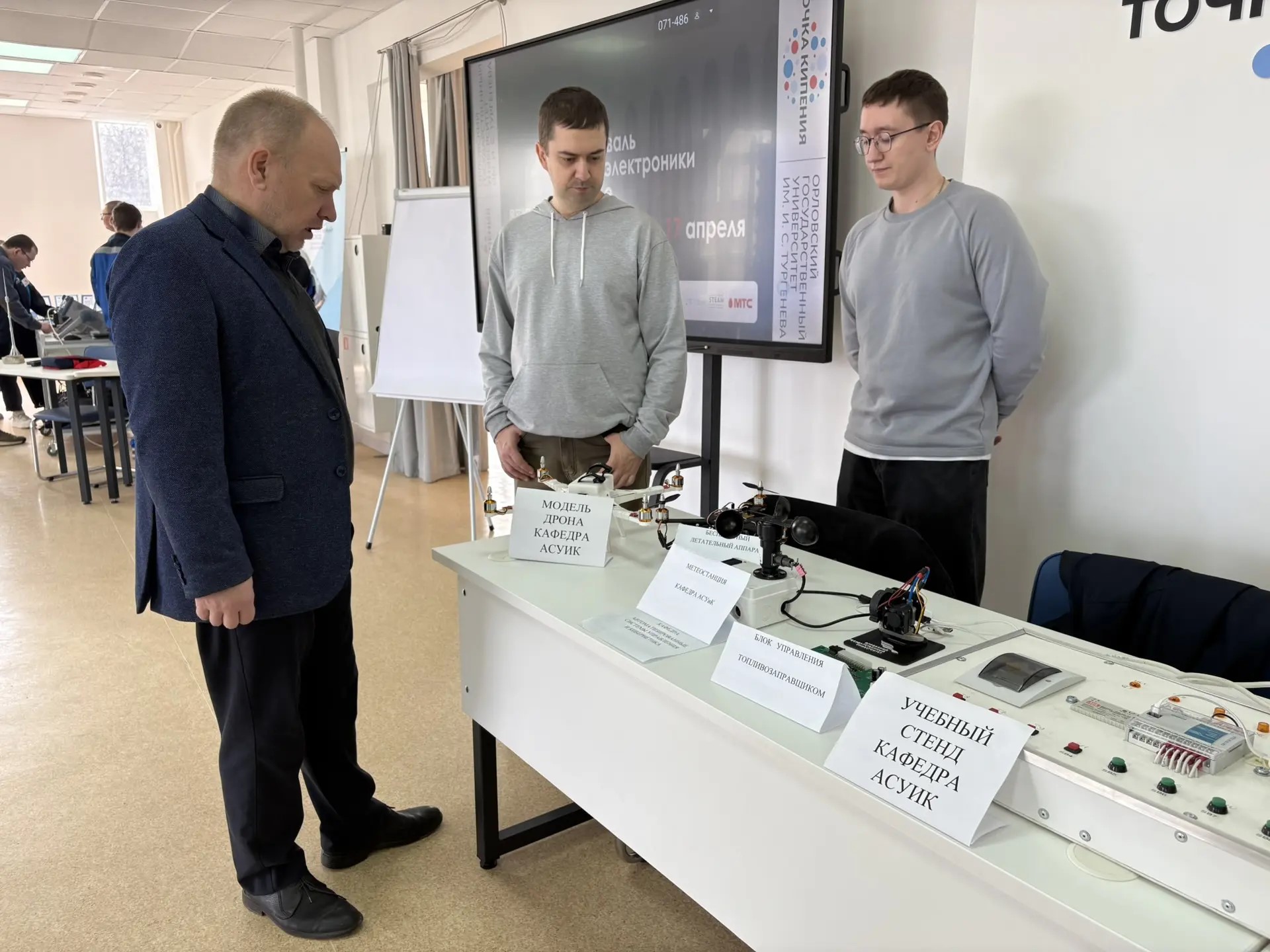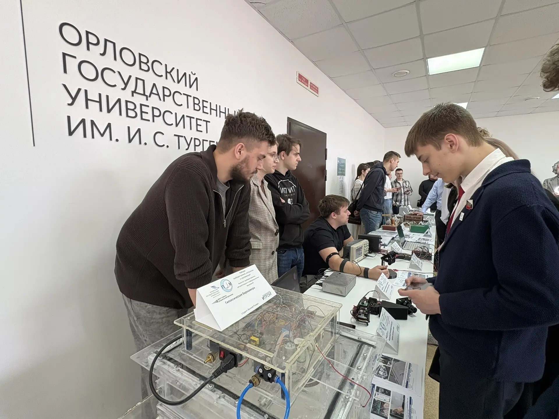 Студенты и преподаватели Института приборостроения, автоматизации и информационных технологий ОГУ имени И.С. Тургенева представили гостям мероприятия выставку «Студенческие учебные проекты», где любой желающий мог подойти к демонстрационным материалам, ознакомиться с оборудованием, узнать о представляемых студенческих разработках или же просто послушать особенности обучения на кафедре института.