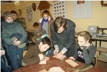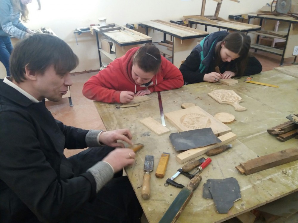 «Этапы реставрации произведений из дерева», мастер-класс проходил в мастерской резьбы по дереву, организатор - Рябинкин Юрий Сергеевич – мастер производственного обучения, он рассказал ребятам об особенностях профессии реставратора, сделав акцент на том, что «…реставрация - комплекс мероприятий, направленных на сохранение и передачу будущим поколениям культурного наследия».