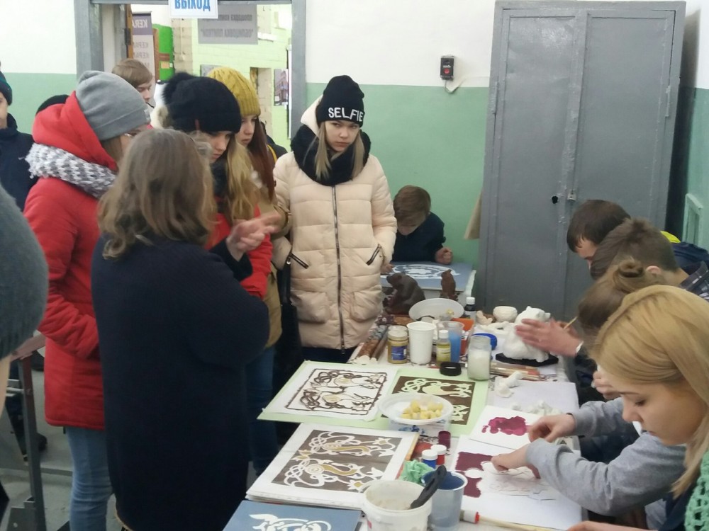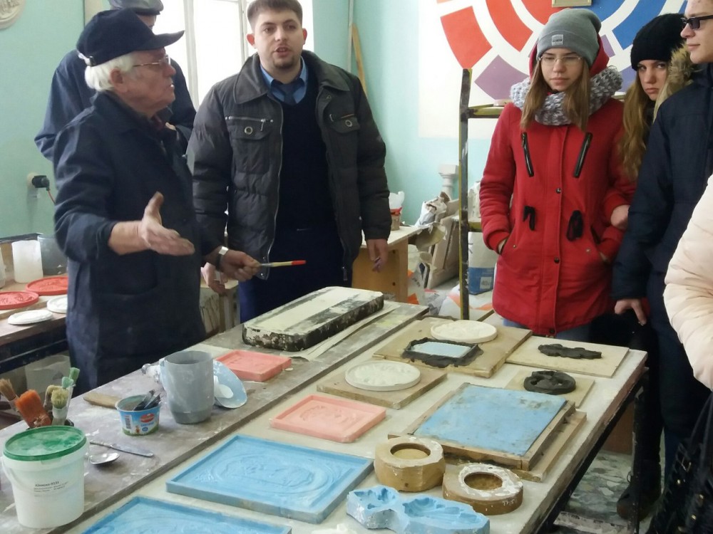 - «Технологи выполнения сувенирной продукции из гипса», мастер-класс проходил в реставрационной мастерской, организатор - Ставцев Вячеслав Николаевич – мастер производственного обучения, он рассказал ребятам об особенностях гипсовых скульптур, особенно подчеркнув, что «…гипсовые изделия имеют особую прочность и стойкость к различным условиям окружающей среды».