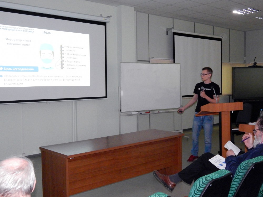 На секции «Биофотоника» студенты представили следующие устные доклады по результатам исследований в рамках проектов, поддержанных Российским научным фондом и Российским фондом фундаментальных исследований: