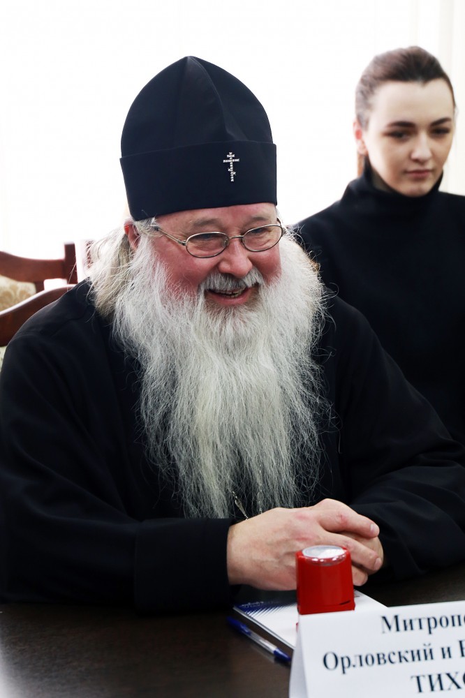 «Дорогие друзья, добрый день, рад всех приветствовать на сегодняшнем мероприятии. Спасибо, что вы нашли время посетить его. Отдельно хочу поблагодарить наших почетных гостей. В первую очередь, его Высокопреосвященство митрополита Орловского и Болховского Тихона и, конечно, депутата Государственной Думы Ольгу Пилипенко. Большое спасибо Татьяне Человенко, которая обладает сумасшедшей энергией, подвигая нас к сотрудничеству с нашей православной церковью».