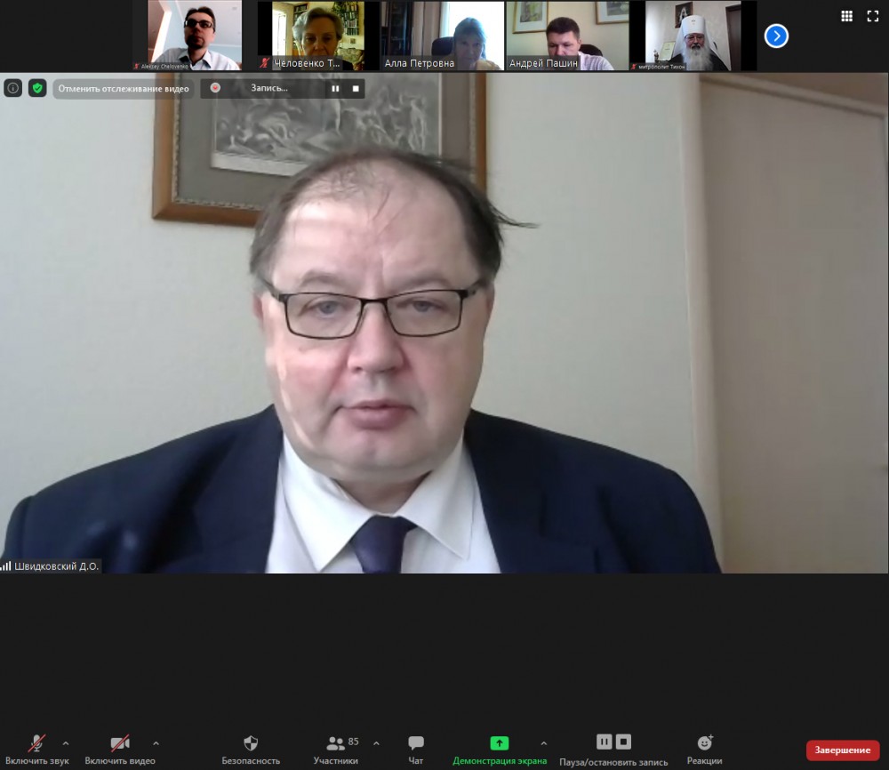 Приветственное слово Швидковского Д.О. логично перешло в главный пленарный доклад «Сохранение историко-культурного наследия Русской Православной Церкви и национальная идентичность русской архитектуры». В своем выступлении Швидковский Д.О. отметил, что архитектурное наследие православного христианства представляет собой энциклопедию русской духовности, современная идентичность русского народа проявляется, в том числе, через архитектурное наследие Русской Православной Церкви, поэтому сегодня особое внимание нужно уделять молодежному волонтерскому движению, направленному на сохранение культурного наследия русского православия.