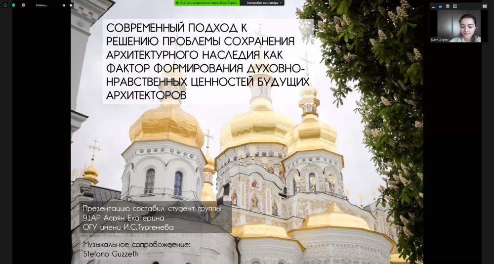 28-29 октября 2020 г. состоялась Всероссийская научно-практическая онлайн-конференция «Архитектурно-культурное наследие русского православия как фактор сохранения исторической памяти и воспитания духовно-нравственных ценностей», организованная кафедрой теологии, религиоведения и культурных аспектов национальной безопасности Орловского государственного университета имени И. С. Тургенева совместно с Орловской митрополией, Департаментом образования Орловской области, Ассоциацией образовательных организаций «Национальная образовательная теологическая ассоциация» и Ассоциацией искусствоведов России. Участниками и слушателями конференции стали более 100 человек из разных регионов России (г. Москва, г. Орел, г. Оренбург, г. Санкт-Петербург, г. Севастополь, г. Смоленск, г. Саранск, г. Ульяновск и др.).
