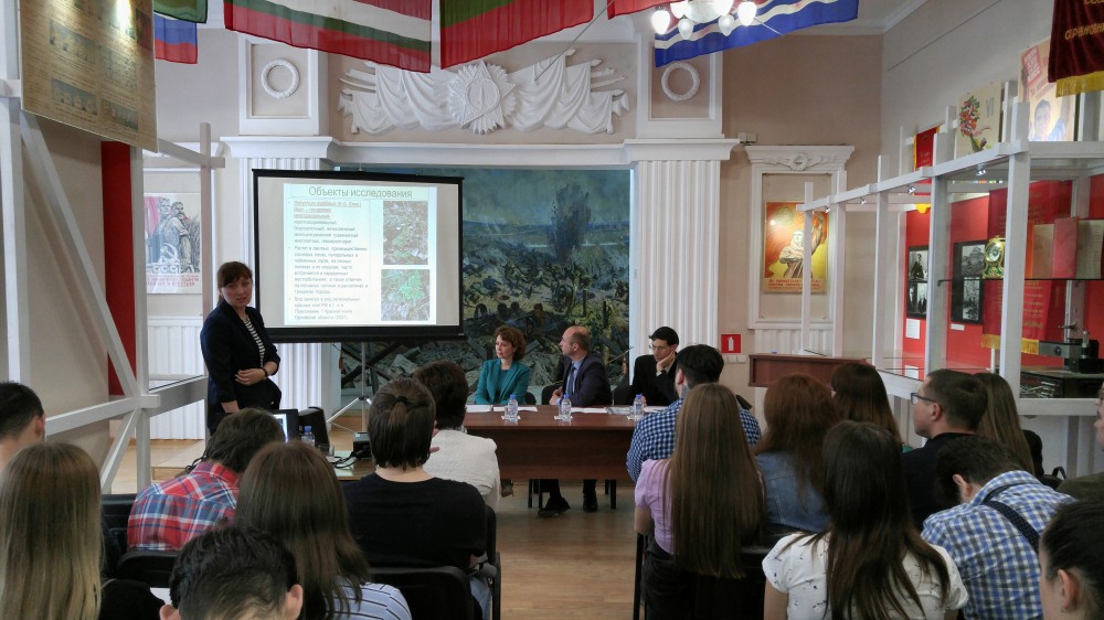 Силаева Ж.Г., доцент ОГАУ им. Н.В. Парахина, выпускница факультета естественных наук ОГУ; Державина Н.М., д.б.н., профессор кафедры ботаники, физиологии и биохимии растений ОГУ им. И.С.Тургенева, тема доклада: «Оценка устойчивости редких видов папоротников национального парка «Орловское полесье»;
