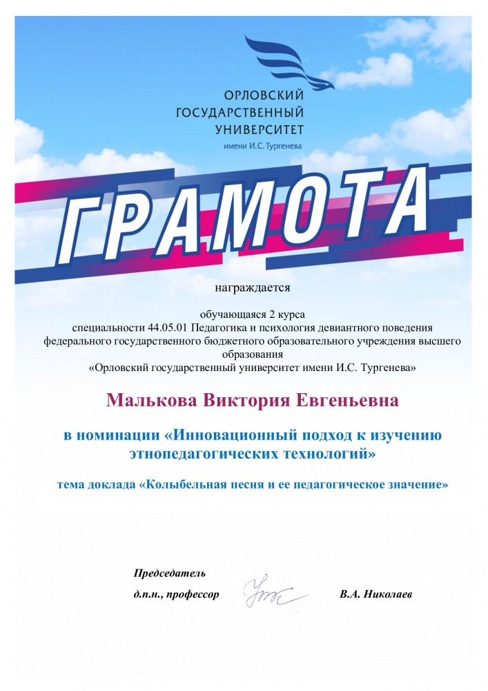 1. Колыбельная песня и ее педагогическое значение - 2 курс, 81 ПП группа, Малькова Виктория Евгеньевна