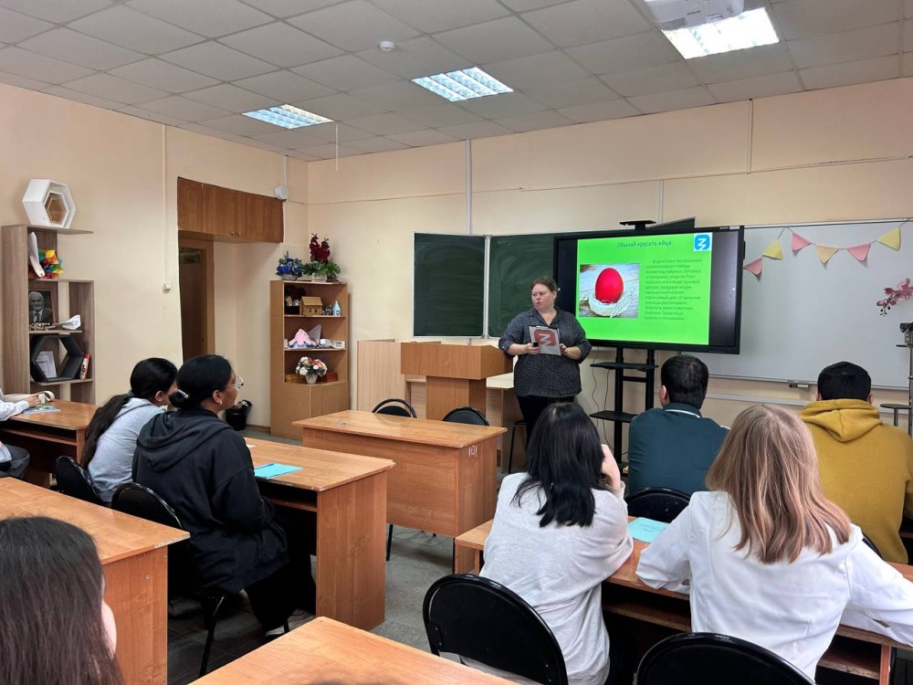 В преддверии православного праздника Пасха в рамках открытого лектория общества «Знание», доцент кафедры профессионального обучения, бизнеса и технологии Кузнецова Людмила Александровна, 10.04.2025 года, провела лекцию: «Народные пасхальные традиции» для студентов факультета технологии, предпринимательства и сервиса.