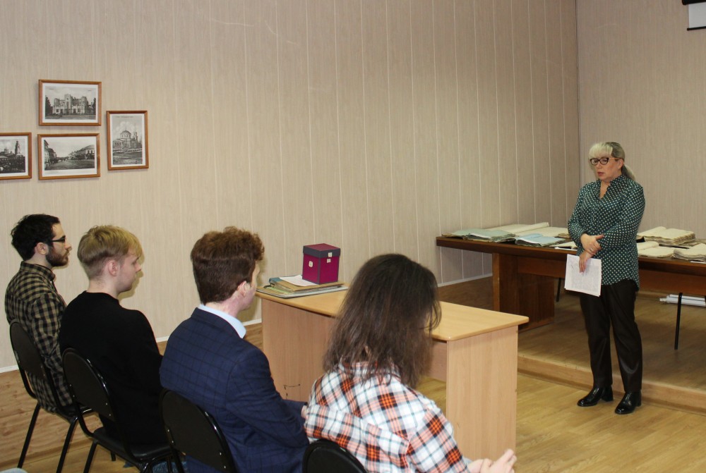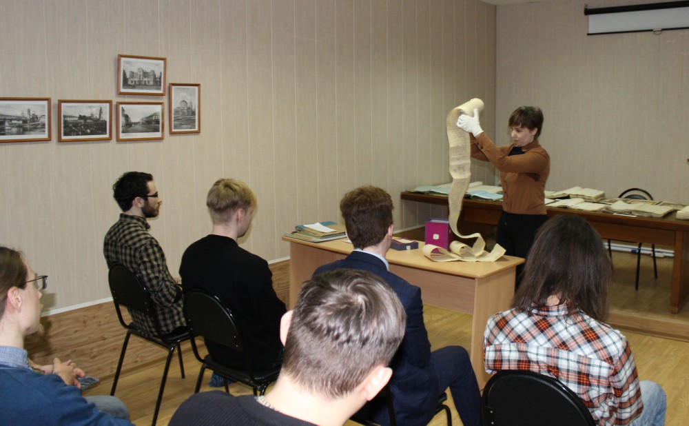 Директор архива - Апарина Юлия Валерьевна подробно осветила каждый аспект проблемы работы в архиве и развенчала миф о том, что это скучная и неинтересная профессия. Студентам было рассказано об особенностях работы в архиве, научно-исследовательских возможностях, уникальных шансах почувствовать себя человеком, прикасающимся к истории.