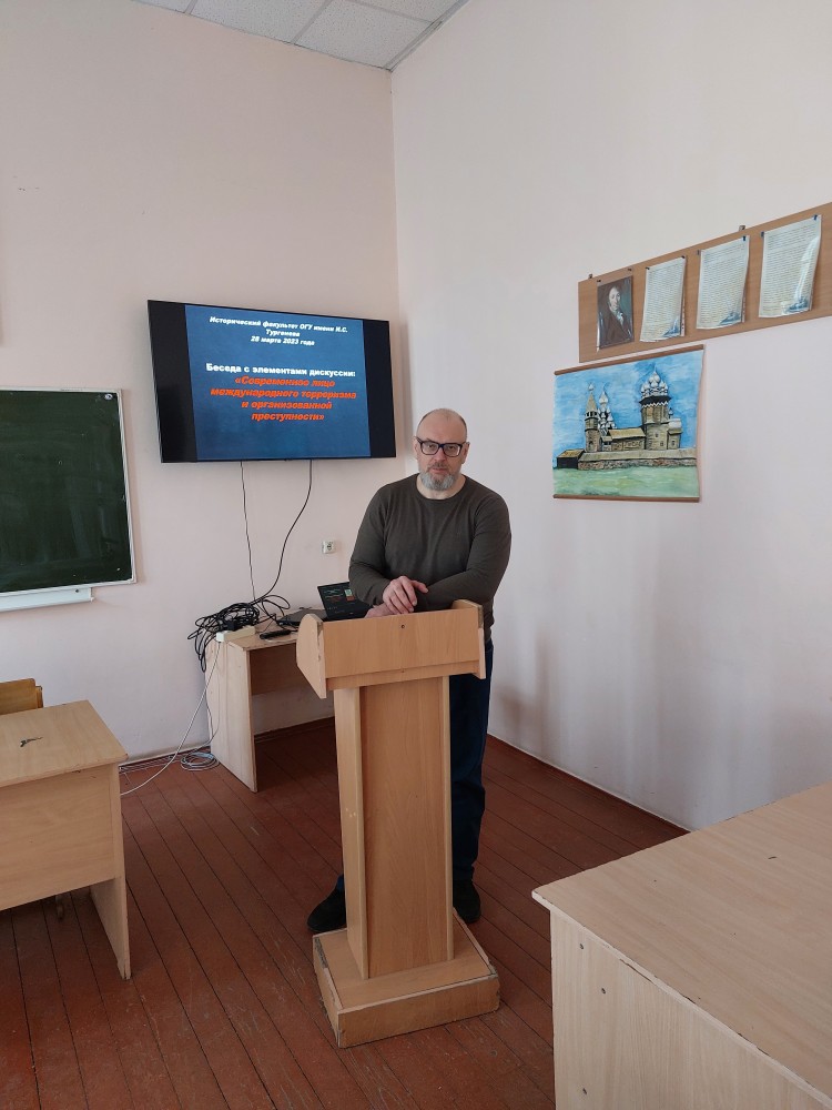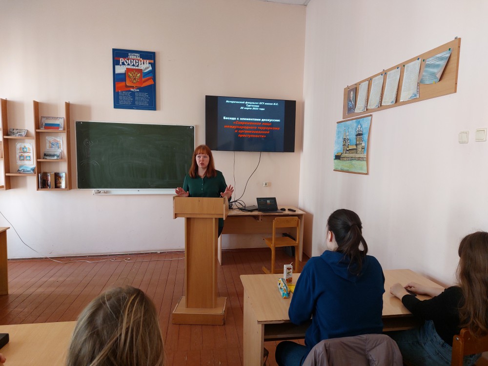 28 апреля 2023 года на историческом факультете Орловского государственного университета имени И.С. Тургенева состоялась беседа с элементами дискуссии на тему «Современное лицо международного терроризма и организованной преступности».