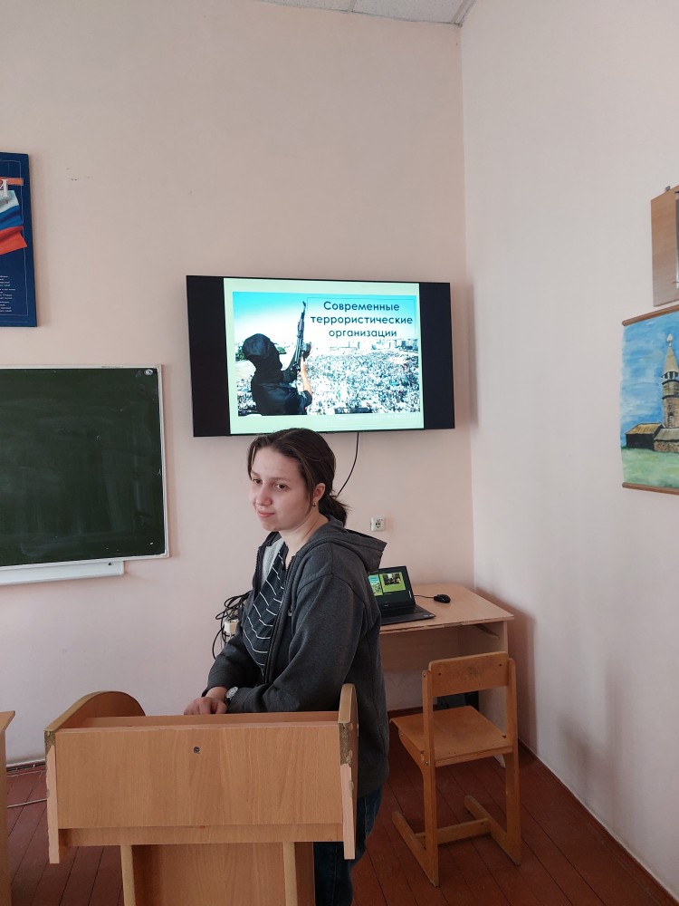 В рамках их выступлений были затронуты истоки и причины терроризма, как пагубного социального явления; освещён исторический аспект террористической деятельности в отдельных странах; проанализирована деятельность отдельных наиболее опасных террористических организаций; выявлена связь с терроризма с организованной преступностью.