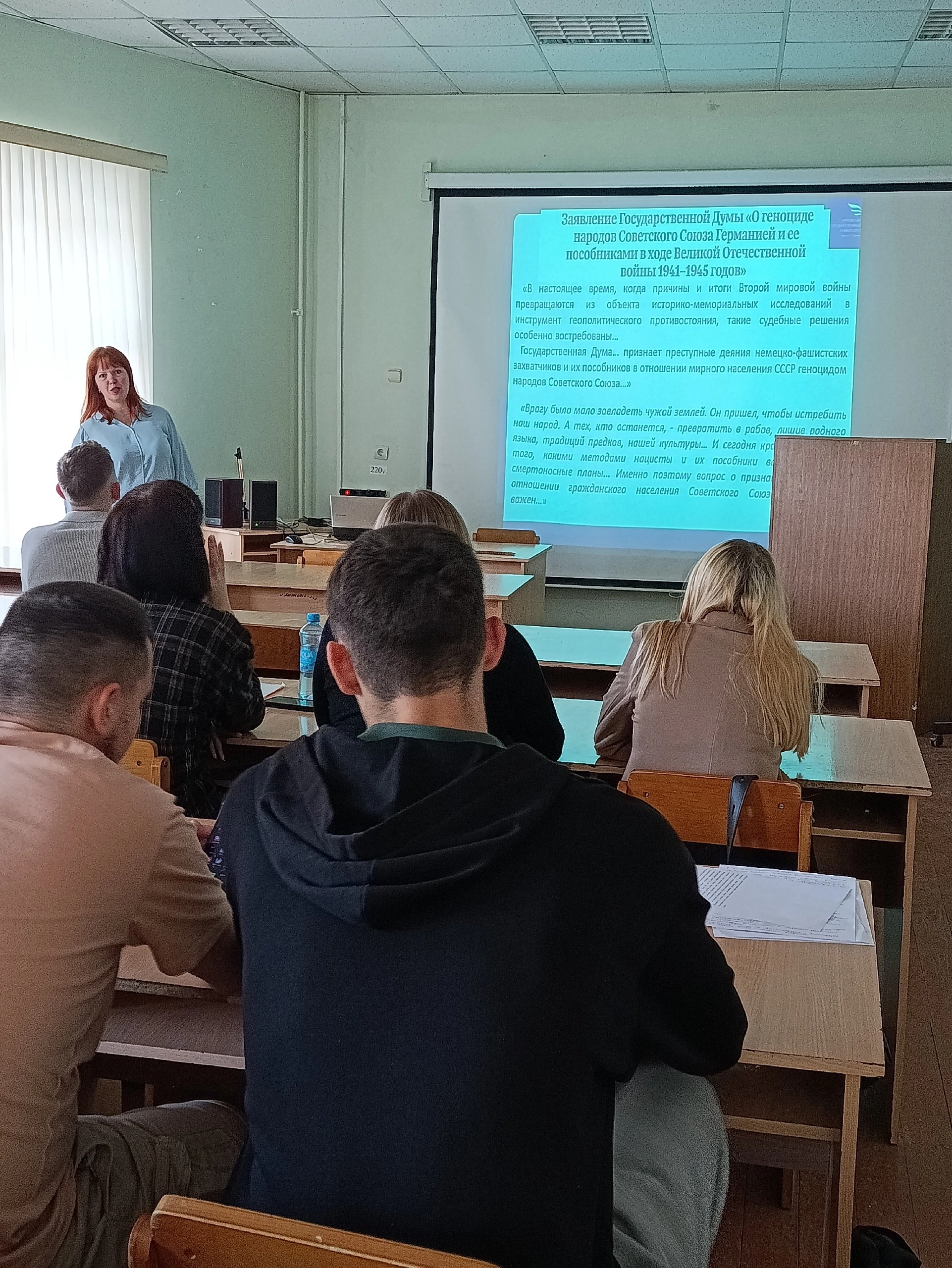 11 июня, в преддверии Дня памяти и скорби, в целях увековечивания исторической памяти на историческом факультете прошла лекция для студентов-педагогов 2 курса на тему «Геноцид народов СССР в годы Великой Отечественной войны – сохраним историческую память».