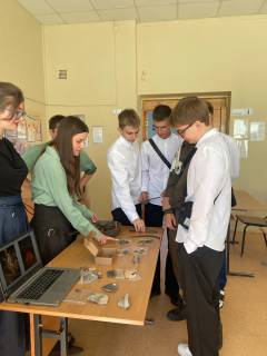 В это же время, другая часть нашей команды провела небольшое мероприятие «Юный археолог» для 7-ого и 10-ого класса школы №7 имени Н.В. Сиротинина .