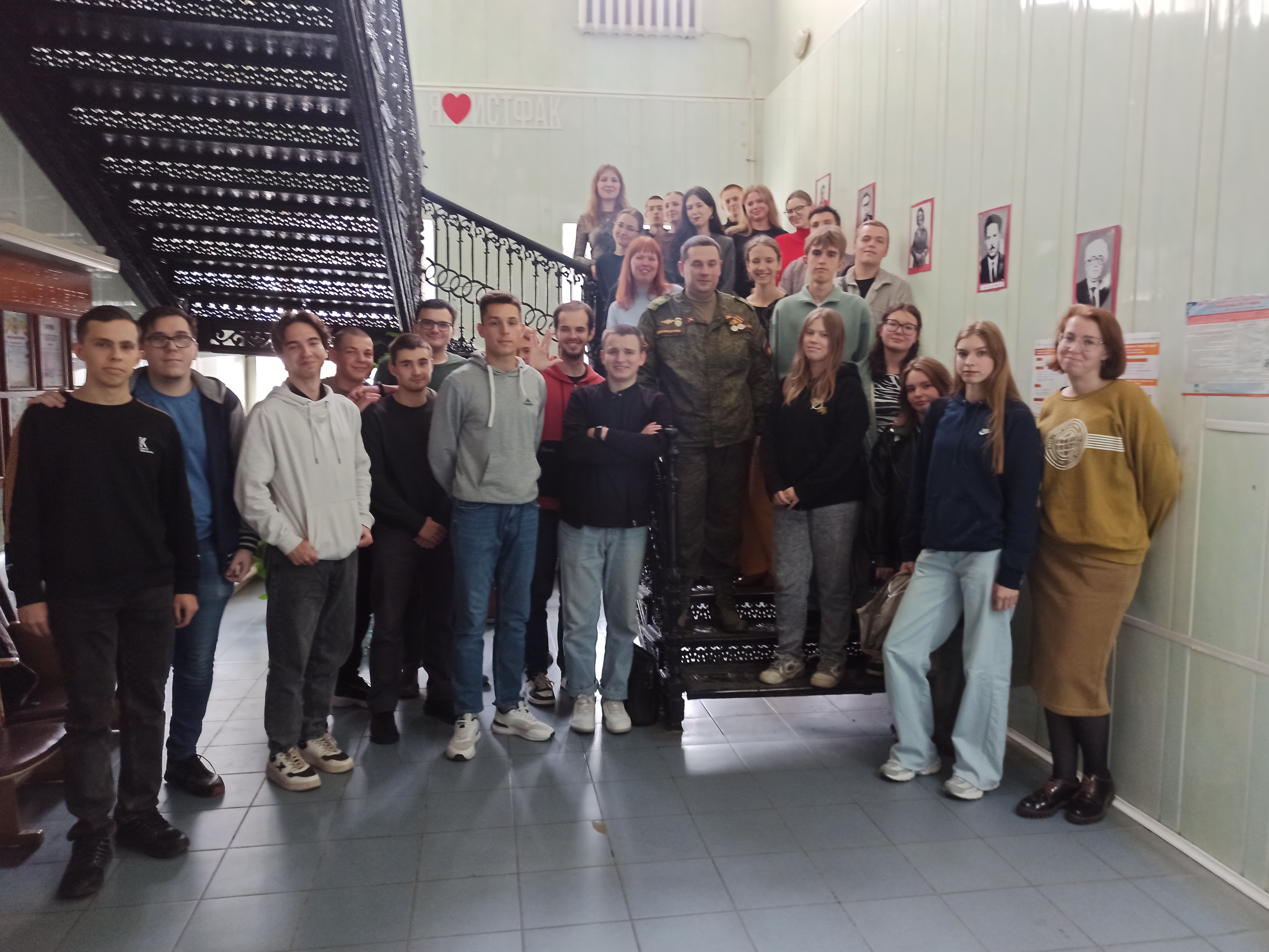 На историческом факультете ОГУ имени И.С. Тургенева 24 октября 2025 года состоялась встреча с ветераном боевых действий, участником специальной военной операции Кириллом Гуджалом.
