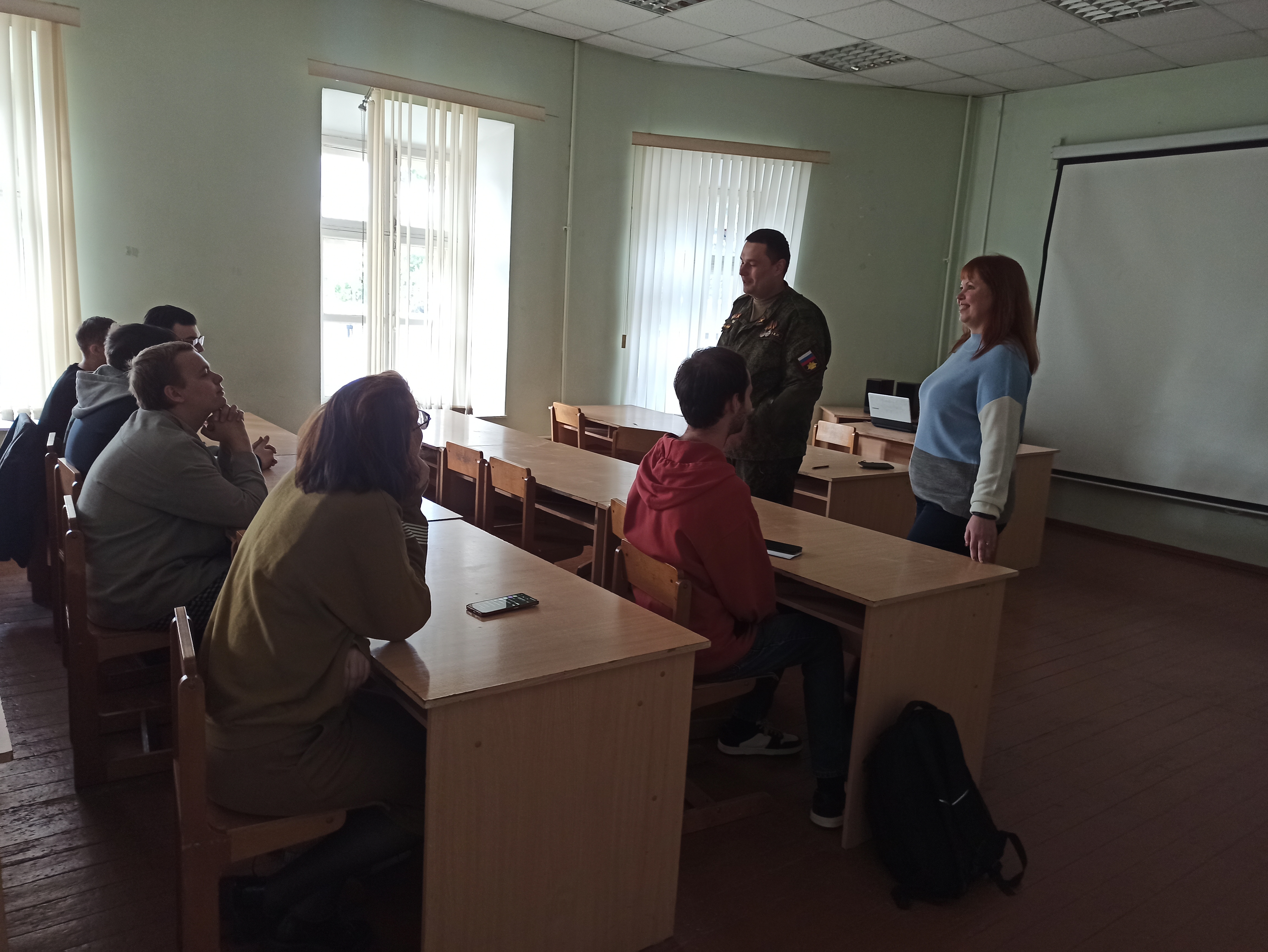 Кирилл Гуджал - выпускник исторического факультета, который пройдя через суровые испытания и получив боевые награды, вернулся к мирной жизни и преподаванию истории. Кирилл Гуджал оказался на передовой в самые первые дни специальной военной операции, он откровенно рассказал о реалиях фронтовой жизни: о буднях военнослужащих, условиях на передовой, испытаниях, которые выпадают на долю защитников страны. Его слова, основанные на личном опыте, звучали предельно честно и взвешенно – без прикрас. Поделился герой и тем, как фронтовой опыт помогает на педагогическом поприще. Студенты смогли задать вопросы, которые касались самых разных сфер жизни в условиях специальной военной операции. Живой интерес у аудитории вызвал рассказ о современной военной технике.