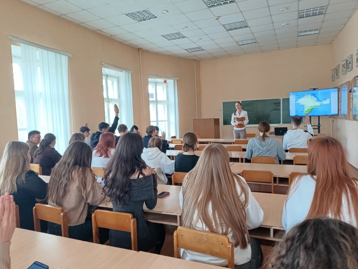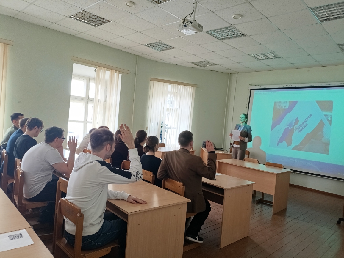 - «Крым в контексте единства народов России». Это мероприятие стало площадкой для более глубокого анализа роли Крыма в формировании общероссийской идентичности. Студенты третьего курса приняли участие в обсуждении вопросов сохранения культурного многообразия Крыма, интеграции региона в экономическое и социальное пространство России, а также значения "Крымской весны" для укрепления единства многонационального народа нашей страны.
