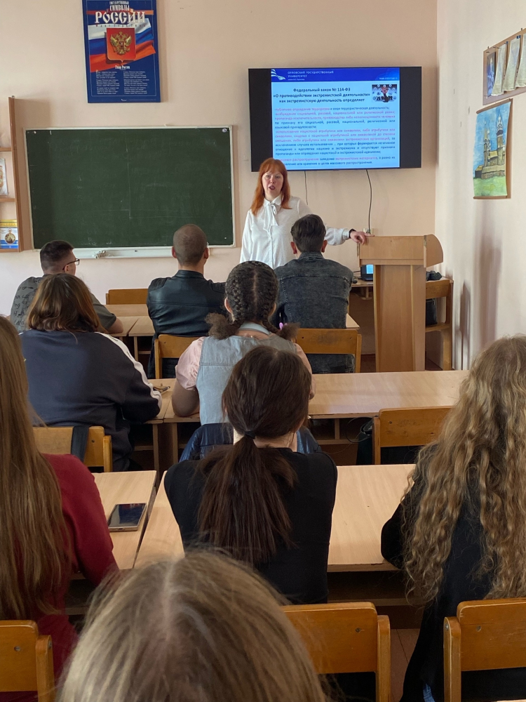 Во исполнение Комплексного плана противодействия идеологии терроризма в Российской Федерации на историческом факультете прошел цикл просветительских бесед, посвященных теме «Противодействие идеологиям терроризма и экстремизма в современном мире». Лекторами выступили кураторы проекта «Экстремизму — нет!» Светлана Свечникова и Ольга Жидкова.
