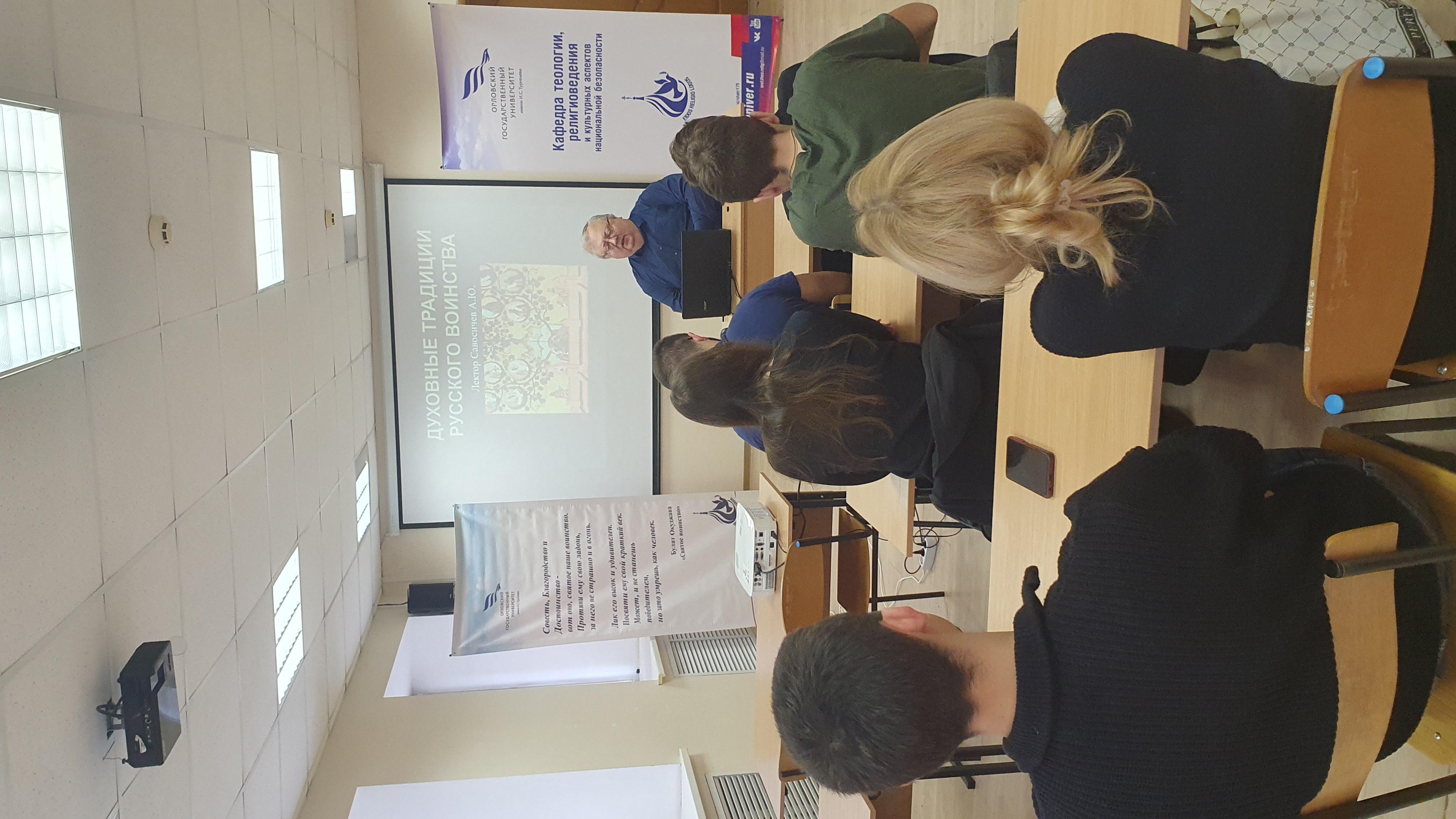 14 ноября 2025 г. профессор кафедры теологии, религиоведения и культурных аспектов национальной безопасности ОГУ имени И.С. Тургенева Савосичев А.Ю. провел для студентов-теологов интерактивную лекцию «Духовные традиции русского воинства XV-XVII вв.» в рамках университетского плана мероприятий в честь Года защитника Отечества.