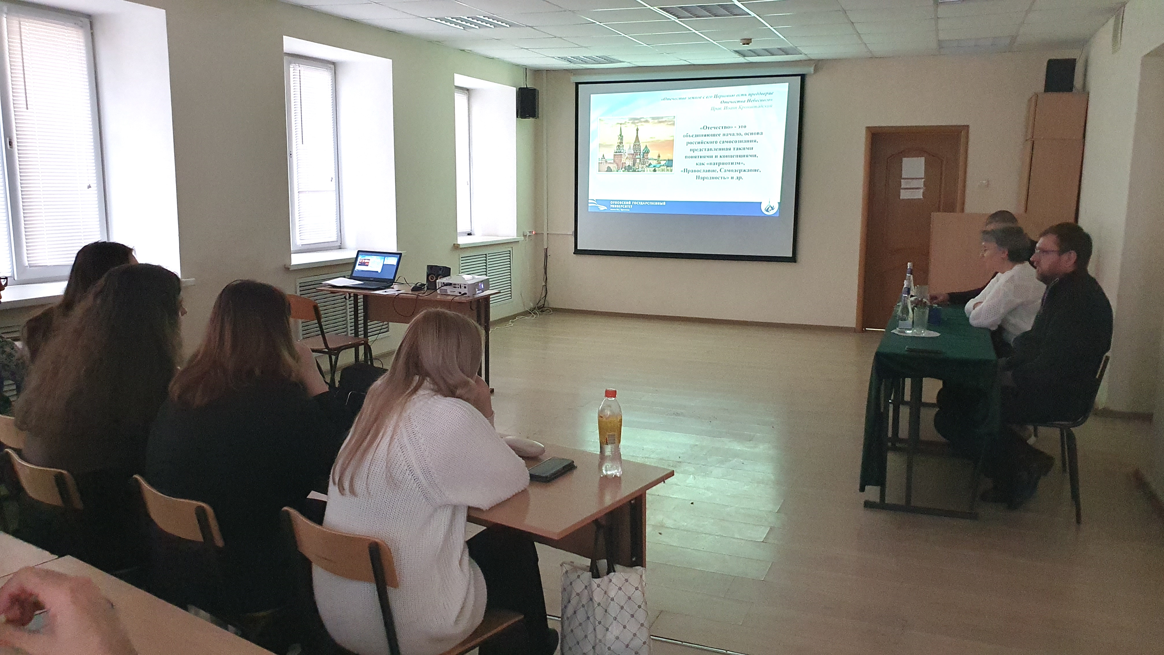 19 декабря 2025 г. на кафедре теологии, религиоведения и культурных аспектов национальной безопасности юридического института ОГУ имени И.С. Тургенева состоялось очередное заседание студенческого дискуссионного клуба «Диалог мировоззрений» на тему «Вера и Отечество: аксиология общероссийской гражданской идентичности». Дискуссия носила знаковый характер: она стала не только символическим итогом цикла мероприятий Года защитника Отечества и 80-летия Победы в Великой Отечественной войне, но и началом работы кафедры в рамках Года единства народов России.