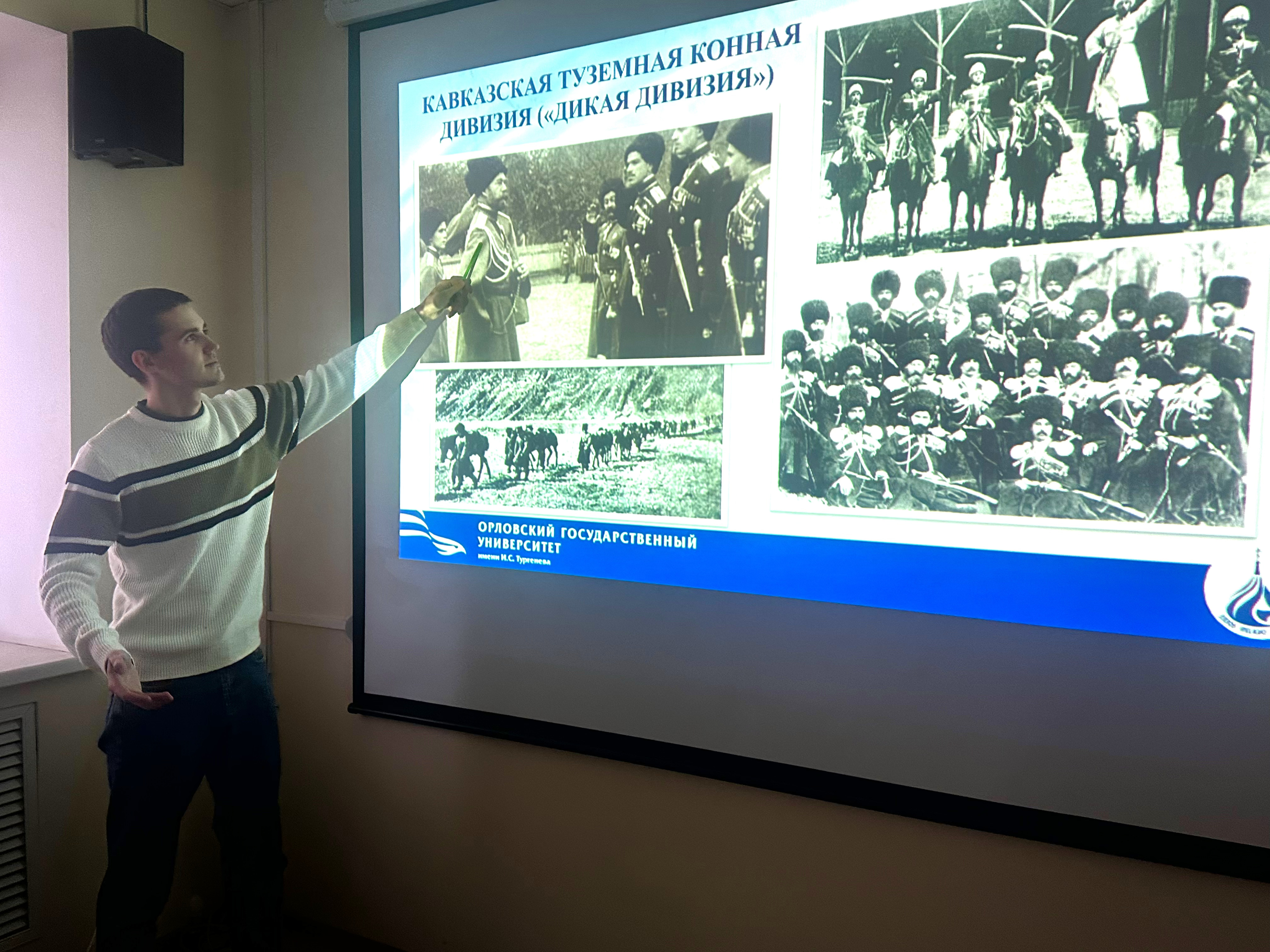 Аргументируя данную точку зрения, студент бакалавриата Левичев И. обратился к тем историческим деятелям и полководцам, чья православная вера стала хрестоматийным примером служения земному и Небесному Отечеству: св. благоверным князьям Александру Невскому и Дмитрию Донскому, полководцам Александру Суворову и св. Федору Ушакову, государю-императору, страстотерпцу Николаю II Романову, действительному статскому советнику, депутату Государственной думы Российской империи IV созыва, сщмч. Василию Шеину, св. юристам Юрию Новицкому и Иоанну Ковшарову и др. К подвигам мусульман-военачальников обратилась студентка бакалавриата Сухоносова А., рассказав о доблестном служении России генералов М. Алиханова-Аварского, Г. Хан-Нахичеванского, А.А. Шихлинского, С. Мехмандарова и др. Как показал Власов А., магистрант II курса обучения, мусульмане России отстаивали интересы нашей страны в разные исторические эпохи (от Ливонской войны до наших дней), считая для себя почетной смерть «воина, отдавшего жизнь в войне за Государя» («Социальная доктрина российских мусульман»). Защита Отечества как духовно-нравственный долг мусульманина была проиллюстрирована видеоматериалом об участии в Первой мировой войне Кавказской туземной конной дивизии («Дикой дивизии»), о которой подробнее рассказал студент бакалавриата Игнатов П. Не забыли отметить и примеры современных нам политических деятелей, православных и мусульман, для которых служение Отечеству и людям органично сочетается с их религиозным мировоззрением.