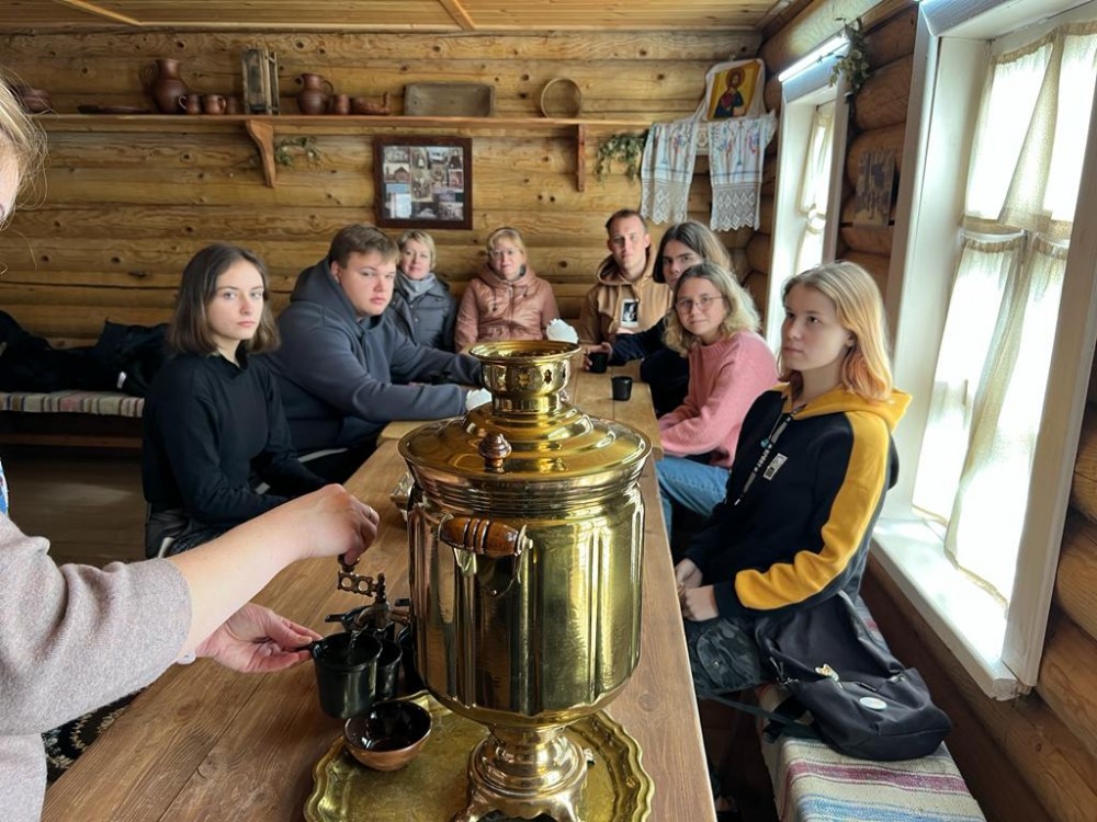 В рамках этнографического мастер-класса «Традиции усадебного гостеприимства» нас встречали в крестьянской избе, рассказали о быте старинной русской усадьбы, о традициях семьи Тургеневых, а угощали чаем из душистых спасских трав.