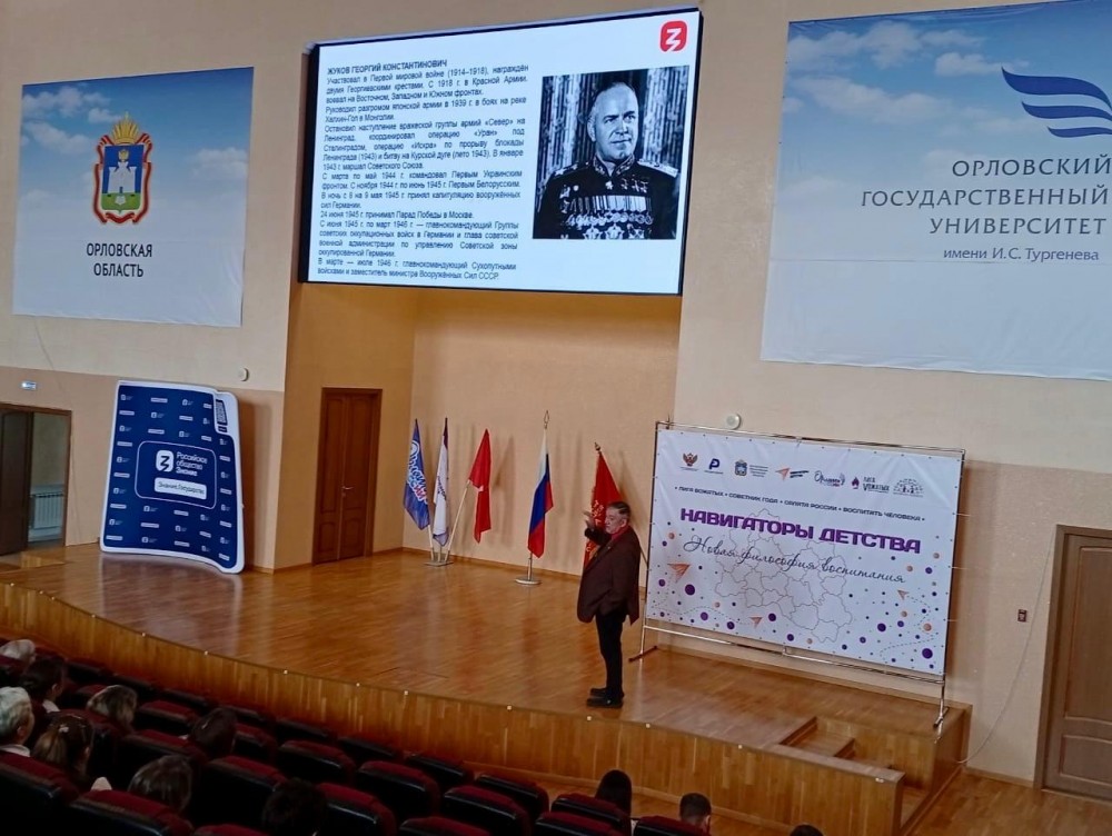 11 апреля стало знаменательной датой для Орловской области. В стенах фундаментальной библиотеки Орловского государственного университета имени И.С. Тургенева развернулся масштабный региональный патриотический форум под названием «Когда мы едины, мы непобедимы!». Это мероприятие, поистине ставшее центральным событием в череде просветительских акций, организованных Российским обществом «Знание» в преддверии 80-летия Великой Победы, собрало под своей крышей впечатляющее количество участников. Его организаторами выступили Российское общество «Знание», Департамент образования Орловской области, Региональный ресурсный центр «Росдетцентр» и Ассоциация «Совет муниципальных образований Орловской области» – солидный союз сил, направленных на воспитание патриотизма у молодого поколения. В форуме приняли участие около двух тысяч человек, представляющих различные уголки Орловской области. Среди них были школьники, студенты, преподаватели, советники директоров по воспитательной работе и специалисты из 27 муниципальных образований региона. Примечательно, что помимо обширной онлайн-аудитории, в очном формате форум посетило около 300 человек, создавая атмосферу живого общения и обмена опытом. Уже с самого входа гостей ожидала насыщенная программа. Интерактивные площадки предлагали участникам окунуться в атмосферу времени, позволяя им изготовить блиндажные свечи – необходимый элемент быта в суровых условиях войны, написать письма поддержки бойцам, находящимся на передовой, тем самым выражая слова надежды и веры в победу, а также принять активное участие в сборе гуманитарной помощи для нуждающихся. Торжественная часть форума, запомнившаяся своими проникновенными выступлениями, стала настоящим центром внимания. На сцене присутствовали высокопоставленные гости: Сергей Шаров, член правительства Орловской области и руководитель Управления региональной образовательной политики Департамента образования Орловской области; Ольга Варакина, исполняющая обязанности руководителя Департамента молодежной политики и реализации патриотических проектов Орловской области; и Андрей Пашин, исполняющий обязанности первого проректора ОГУ им. И.С. Тургенева. Их слова, обращенные к участникам форума, несомненно, стали мощным импульсом для дальнейшей работы по патриотическому воспитанию. Но форум был не только торжественным мероприятием, он был богат и на содержательную образовательную программу. Участники имели возможность послушать лекции от ведущих специалистов просветительской организации. Особое внимание привлекла лекция доктора исторических наук, профессора, заведующего кафедрой теории и истории государства и права Дмитрия Владимировича Аронова. Тема его выступления – «Родина помнит своих героев: ключевые личности Великой Отечественной войны» – затронула самые важные аспекты истории, подчеркнув значимость памяти о подвигах наших предков в борьбе за свободу и независимость Родины. Лекция Аронова стала ярким примером того, как исторические знания могут быть использованы для воспитания патриотизма и чувства ответственности перед будущими поколениями. В целом, форум стал не просто собранием людей, но мощным импульсом к развитию патриотического воспитания в Орловской области, показывая пример того, как история мо