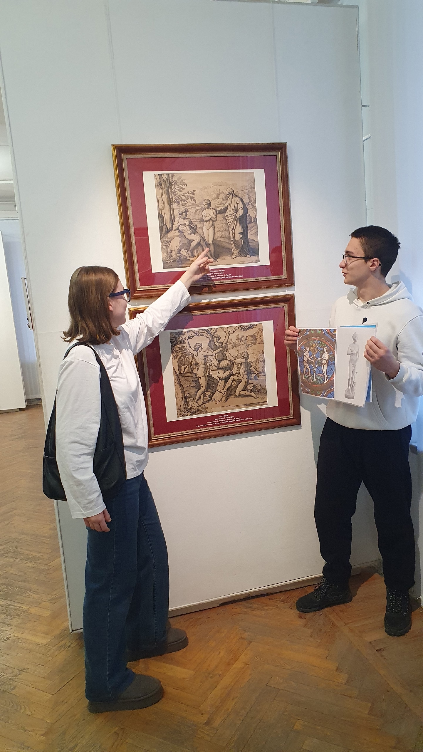 Студенты-теологи заинтересовались фрагментами фресок Рафаэля, сосредоточившись на гравюрах и литографиях на библейскую тематику, четко демонстрирующих характерную для Европы и России разницу в восприятии религиозного искусства. Будущие социальные работники отметили реалистичность библейских изображений, детализацию человеческих фигур и их живоподобность, что так не свойственно русской иконописи. Студенты-теологи Игнатов Павел и Сотников Сергей поделились своими знаниями о том, что в православной художественной традиции на первый план всегда выходило отражение внутренней духовной жизни человека. Отмечена была студентами и пространственная перспектива русских икон, сосредотачивающаяся на зрителе и включающая его во внутренний диалог с изображением.
