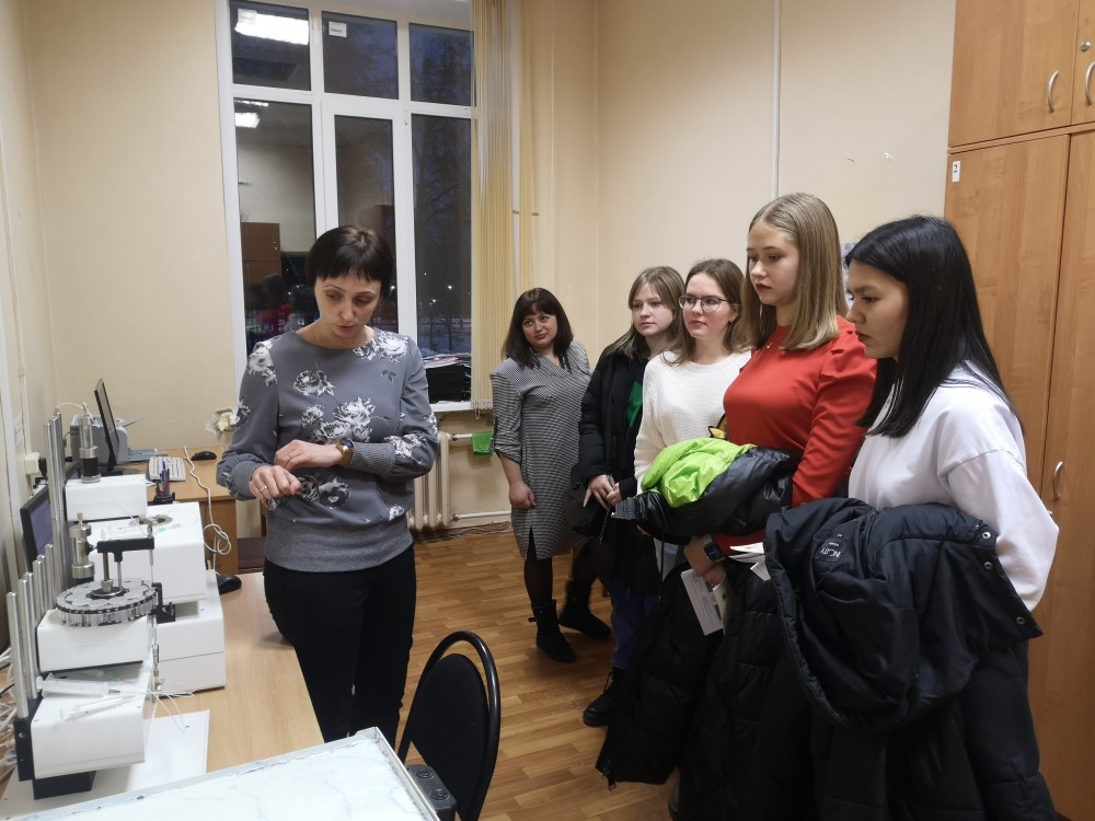 Доцент Н.В. Фролова провела экскурсию в «Лаборатории экологического мониторинга и оценки экологического состояния окружающей среды», рассказала о целях и задачах лаборатории, направлениях исследований, продемонстрировала работу хромотографа жидкостного микроколоночного «Милихром-6».
