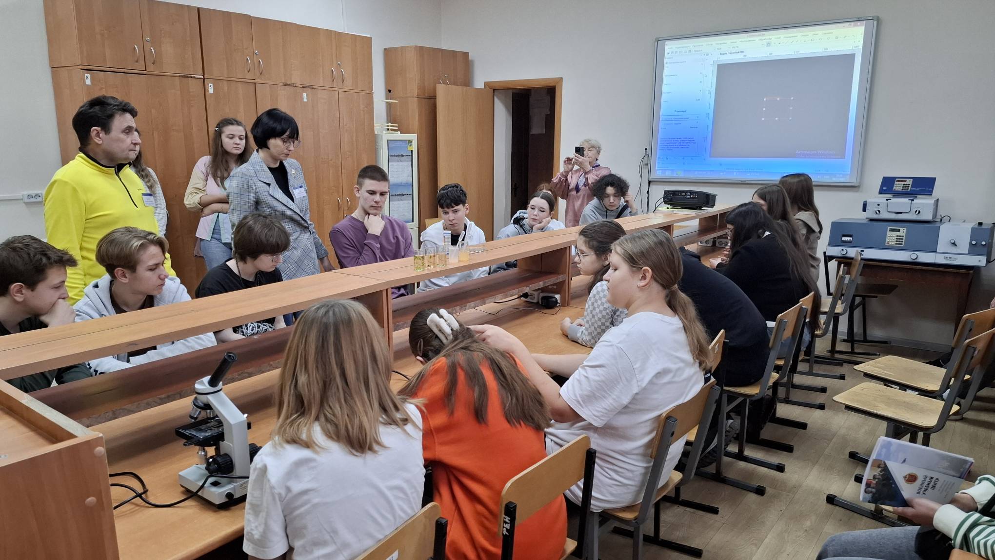 Доценты Ирина Николаевна Кондрашова (руководитель образовательной программы по направлению подготовки 05.03.06 Экология и природопользование), Надежда Владимировна Фролова и Александр Валерьевич Николаев продемонстрировали учащимся средних общеобразовательных школ и студентам первого курса медицинского колледжа доступные методы исследования некоторых параметров сред обитания.