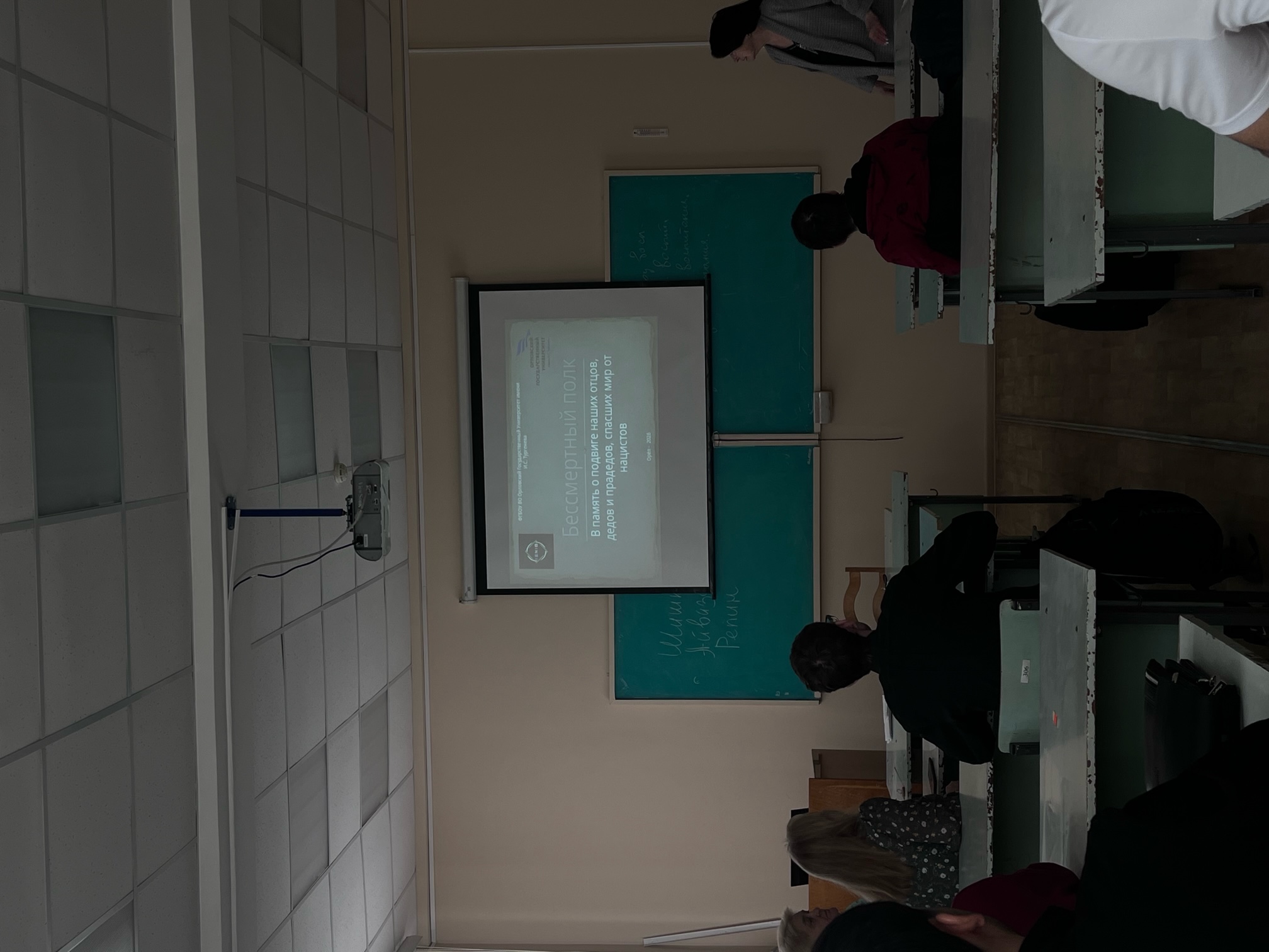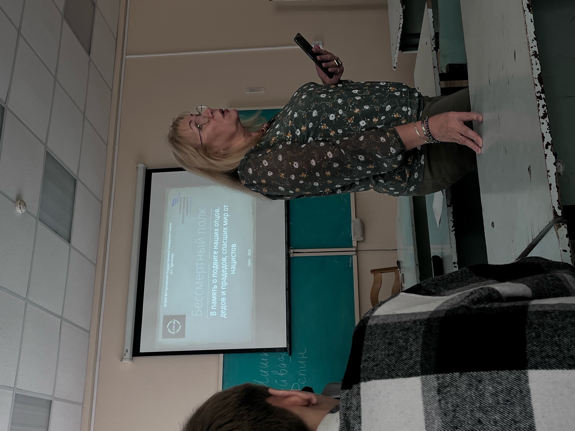 17.04.2026 г. в рамках акции «День единых действий», посвященной дню памяти о геноциде советского народа нацистами и их пособниками в годы Великой Отечественной Войны, в 10-00 в аудитории 306 главного корпуса ОГУ им И С Тургенева было проведено мероприятие «Бессмертный полк . В память о наших отцах, дедах и прадедах, спасших мир от нацистов»