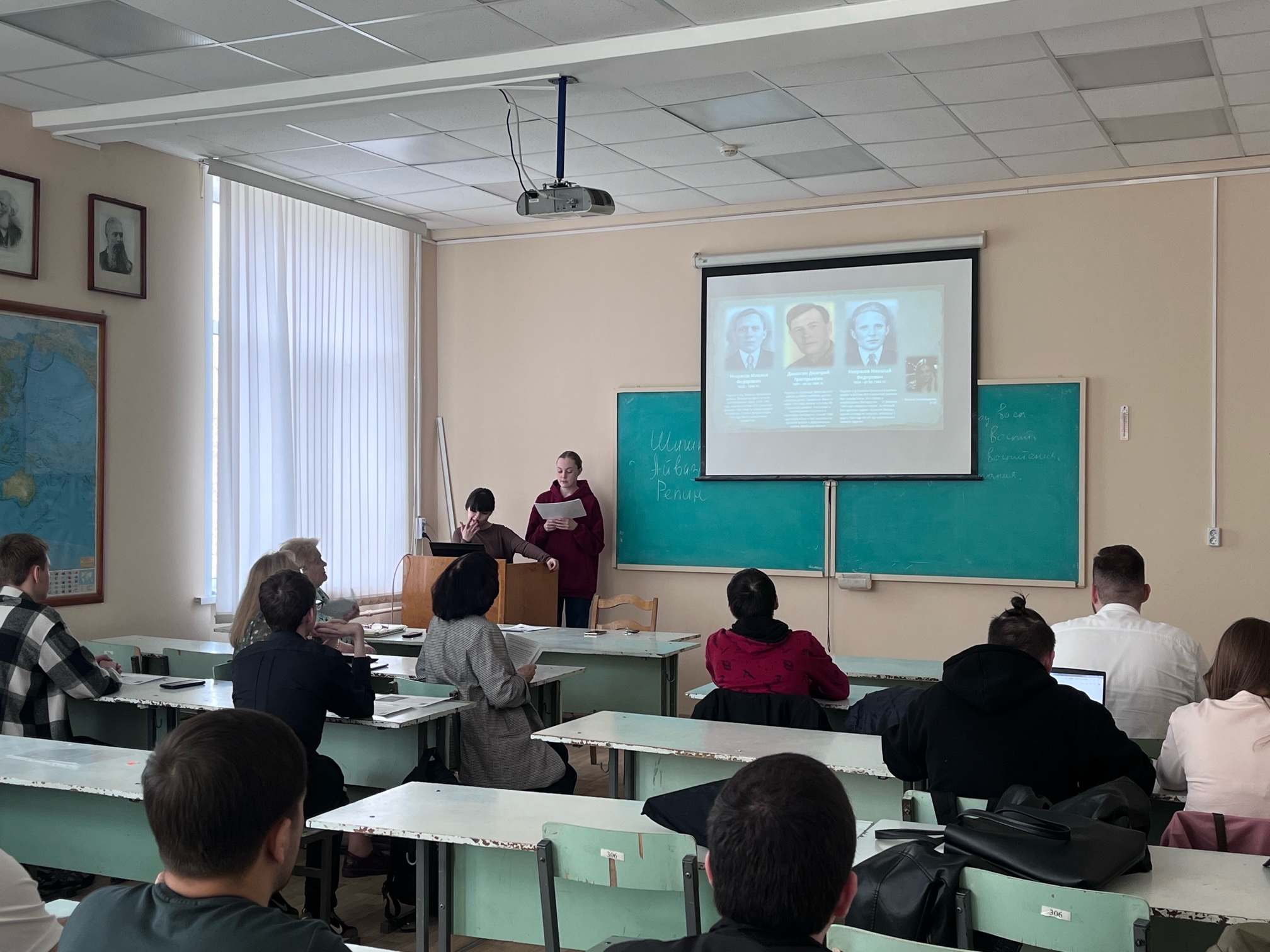 В презентации студенты показали семейные фото своих героических родственников. Слушая рассказ каждого студента и преподавателя о пути, пройденном его героическим родственником в Великой Отечественной войне, коллеги узнали, какая сила и мощь национального единства и патриотизма позволила советскому народу выстоять и победить в самой страшной войне ХХ века. Студенты и преподаватели поделились фактами биографии, воспоминаниями, что позволило глубже осмыслить масштаб подвига и цену Победы.