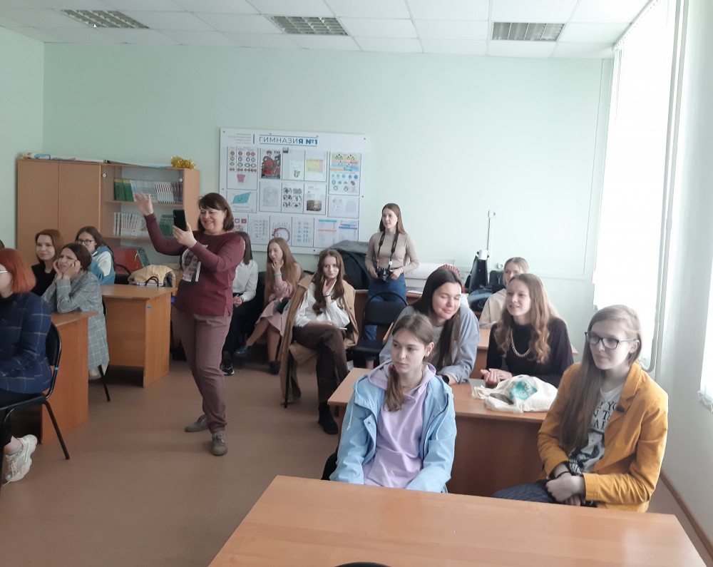 Затем студентка 2 курса Смахтина Варвара в яркой и эмоциональной форме рассказала ребятам об особенностях обучения на инязе, возможностях творческой и социальной самореализации и перспективах профессионального роста.