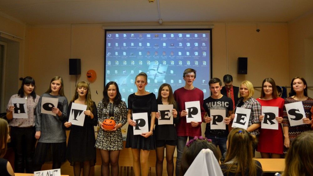 В начале церемонии студентов 1 курса проверили на знание персонажей и символов этого англоязычного праздника. Они должны были ответить на вопросы, посмотрев видео и послушав песню This is Halloween.