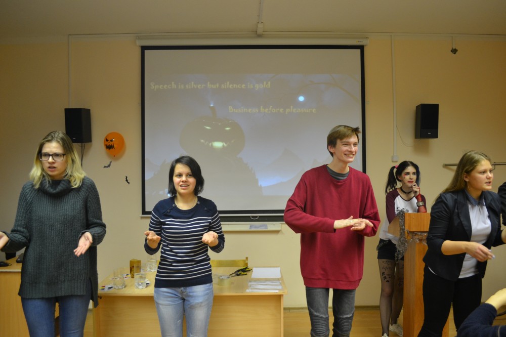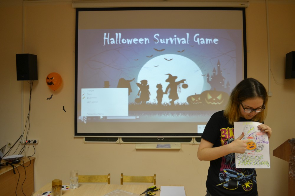 Затем первокурсникам предстояло стать участниками “Halloween Survival Game” и пройти несколько испытаний для того, чтобы оправдать звание студентов иняза.
