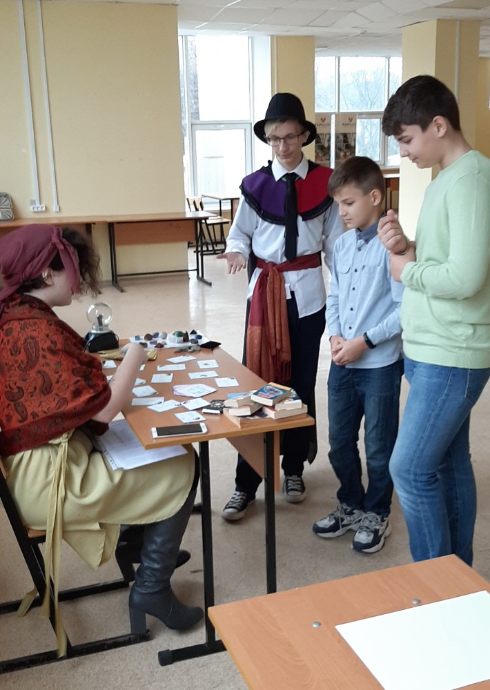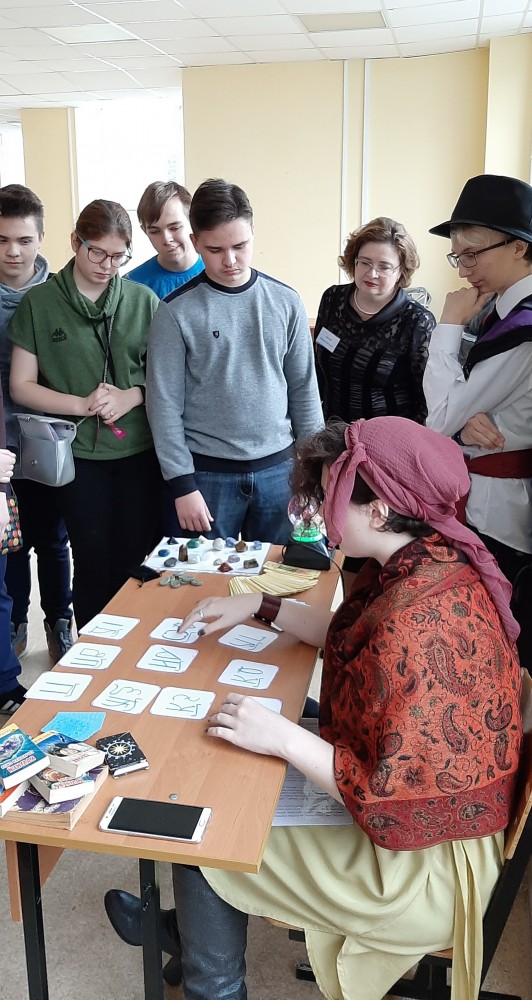Их путь лежал в Комнату Знаний, где Анастасия Станишевская в образе Fortune Teller/Гадалки, предсказывая судьбы всем желающим, поведала гостям о происхождении названий некоторых элементов и их магических свойствах, познакомила с малоизвестными значениями некоторых английских слов, имеющих отношение к химии.